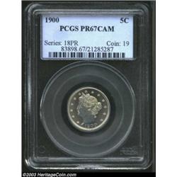 <TABLE cellSpacing=0 cellPadding=0 width="100%" bgColor=#000000 border=0><TBODY><TR><TD width="100%"><TABLE cellSpacing=1 cellPadding=3 width="100%" border=0><TBODY><TR><TD width="100%" bgColor=#79735c><FONT face=arial color=#ffffff size=3><B>Description</B> </FONT></TD></TR><TR><TD width="100%" bgColor=#ffffff><FONT face=arial size=2><B>1900 5C PR67 Cameo PCGS.</B></I> Deeply mirrored in the fields with just enough mint frost on the devices to give the coin a noticeable cameo contrast. The devices have taken on a light accent of lime-green patina while the fields show contrasting ice-blue coloration. A doubly contrasted coin: frost on mirrors, and color on color. Population: 1 in 67, 0 finer (8/03). </FONT></TD></TR></TBODY></TABLE></TD></TR></TBODY></TABLE><BR><A name=PricesRealized></A><TABLE cellSpacing=0 cellPadding=0 width="100%" bgColor=#000000 border=0><TBODY><TR><TD width="100%"><TABLE cellSpacing=1 cellPadding=3 width="100%" border=0><TBODY><TR><TD width="100%" bgColor=#79735c><A name=PR><FONT face=arial color=#ffffff size=3><B>Previous Prices from Heritage Auctions</B> </FONT></A></TD></TR><TR><TD bgColor=#f6f6ed>No Prior Data Recorded </TD></TR><TR><TD bgColor=#ffffff><FONT face=arial size=1 ?>PLEASE NOTE: All prices realized reflect the final hammer price PLUS the buyer's premium in auctions that charge a buyer's premium. Each item has a notation at the top of the listing indicating whether that lot included a buyer's premium. Example: A item that sells with a final hammer price of $100 and a 20% buyer's premium will display with a price realized of $120. All information listed is intended to be as accurate as possible, but errors are possible. Please use this guide carefully and inform us of any inaccuracies. </FONT></TD></TR></TBODY></TABLE></TD></TR></TBODY></TABLE><BR><TABLE cellSpacing=0 cellPadding=0 width="100%" bgColor=#000000 border=0><TBODY><TR><TD width="100%"><TABLE cellSpacing=1 cellPadding=3 width="100%" border=0><TBODY><TR><TD width="100%" bgColor=#79735c colSpan=6><FONT face=arial color=#ffffff size=3><B>Price Guide*</B> </FONT></TD></TR><TR bgColor=#f6f6ed><TD align=middle><B>Grade</B> </TD><TD align=middle><B>Coin World<BR>(Trends)</B> </TD><TD align=middle><B>Numismedia<BR>Retail</B> </TD><TD align=middle><B>Numismedia<BR>Wholesale</B> </TD><TD align=middle><B>Coin<BR>Universe</B> </TD><TD align=middle><B>Heritage<BR>Value Index</B> </TD></TR><TR bgColor=#ffffff><TD align=middle>66</TD><TD align=right>---</TD><TD align=right>---</TD><TD align=right>---</TD><TD align=right>---</TD><TD align=right>---</TD></TR><TR style="FONT-WEIGHT: bold" bgColor=#cccfdd><TD align=middle>67</TD><TD align=right>---</TD><TD align=right>---</TD><TD align=right>---</TD><TD align=right>---</TD><TD align=right>---</TD></TR><TR bgColor=#ffffff><TD align=middle>68</TD><TD align=right>---</TD><TD align=right>---</TD><TD align=right>---</TD><TD align=right>---</TD><TD align=right>---</TD></TR><TR bgColor=#ffffff><TD colSpan=6><FONT size=1>*All information listed is intended to be as accurate as possible, but errors are possible. No item may be returned or refused based on this information which is provided as a service to our customers. You should contact each pricing source directly to determine the accuracy of this information. </FONT></TD></TR></TBODY></TABLE></TD></TR></TBODY></TABLE><BR><TABLE cellSpacing=0 cellPadding=0 width="100%" bgColor=#000000 border=0><TBODY><TR><TD width="100%"><TABLE cellSpacing=1 cellPadding=3 width="100%" border=0><TBODY><TR><TD width="100%" bgColor=#79735c><FONT face=arial color=#ffffff size=3><B>Population Guide</B> </FONT></TD></TR><TR bgColor=#ffffff><TD align=middle><!-- Begin Output of Population Grid--><TABLE cellSpacing=0 cellPadding=0 width="100%" border=0><TBODY><TR><TD vAlign=center><TABLE cellSpacing=0 width="100%" border=1 cellsadding="3"><TBODY><TR><TD vAlign=center><TABLE cellSpacing=0 cellPadding=3 width="100%" border=1><TBODY><TR><TD vAlign=center align=middle bgColor=#f0f1e8 colSpan=2 <CENTER><FONT face=Arial size=2><B>PCGS Pop </B></FONT><CENTER></CENTER></TD><TD vAlign=center align=middle bgColor=#f0f1e8 colSpan=2><CENTER><FONT face=Arial size=2><B>NGC Pop</B></CENTER></FONT></TD></TR><TR><TD vAlign=center><FONT face=Arial size=2>(67)</FONT> </TD><TD vAlign=center align=right><FONT face=Arial size=2>1</FONT> </TD><TD vAlign=center><FONT face=Arial size=2>(67)</FONT> </TD><TD vAlign=center align=right><FONT face=Arial size=2>4</FONT> </TD></TR><TR><TD vAlign=center><FONT face=Arial size=2>(>67)</FONT> </TD><TD vAlign=center align=right><FONT face=Arial size=2>0</FONT> </TD><TD vAlign=center><FONT face=Arial size=2>(>67)</FONT> </TD><TD vAlign=center align=right><FONT face=Arial size=2>0</FONT> </TD></TR></TBODY></TABLE></TD></TR></TBODY></TABLE></TD></TR></TBODY></TABLE><!-- End Output of Population Grid--> Important notice: Heritage usually auctions material at the rate of 200-250 lots per hour. On some occasions eBay Live bid software or the Internet may not be able to keep up with the pace of the auction. We recommend placing a realistic absentee bid now as insurance to avoid disappointment. Occasionally the auctioneer may eliminate or reject an eBay Live bid, and the auctioneer may also reopen a lot after the close of the eBay live bidding (usually because we missed an audience bid), and may reject your bid even if it shows you as the winning bidder. By bidding via eBay Live, you agree that Heritage may award the lot to another bidder at its sole discretion under the circumstances described above or any other reasonable circumstances. Also please note that all Heritage lots purchased through eBay Live carry a 20% Buyer's Premium. Please make sure you read the Terms and Conditions before you bid.</TD></TR></TBODY></TABLE></TD></TR></TBODY></TABLE>