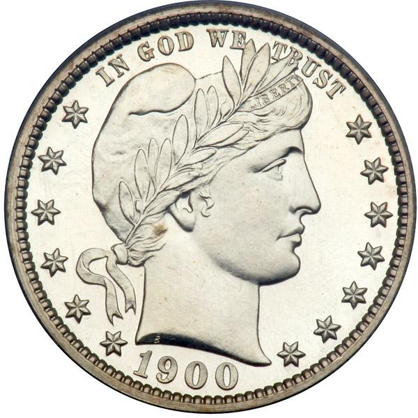 1900. PCGS graded Proof 65+ Cameo PQ. CAC Approved. Only 912 struck. A blazing white gem. Pop 1; 18 finer, 12 in 66, 5 in 67, 1 in 68 (PCGS # 85686) .
