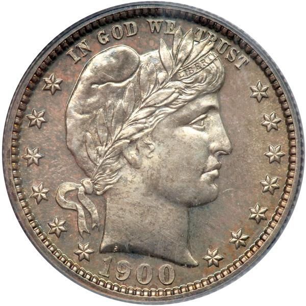 1900. PCGS graded Proof 63 CAC Approved. Delicate shades of blue and gold toning. A choice example and one of only 912 Proofs struck. Pop 55; 108 finer (PCGS # 5686) .