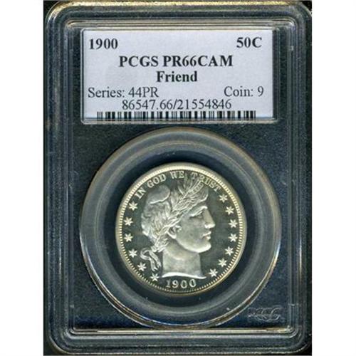 <b>1900 Barber Half Dollar. PCGS graded PF66 CAM.</b> Powerfully burning silvery luster explodes like a fire storm on the mirror-fresh, largely brilliant surfaces of this impressive gem. A flicker of light frost highlights the uppermost facial features and hair on the Liberty's likeness, with comparable frost on the eagle on the reverse. If you aren't too vain, you can almost admire your reflection in the glass of the smooth mirror fields on this piece. "Everything's splendid!" Proof mintage was only 912 pieces <b>(PCGS # 86547)</b> <i>