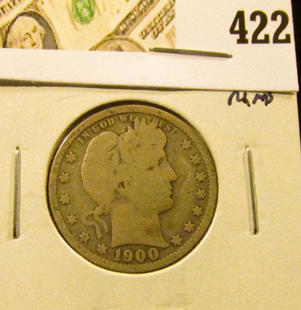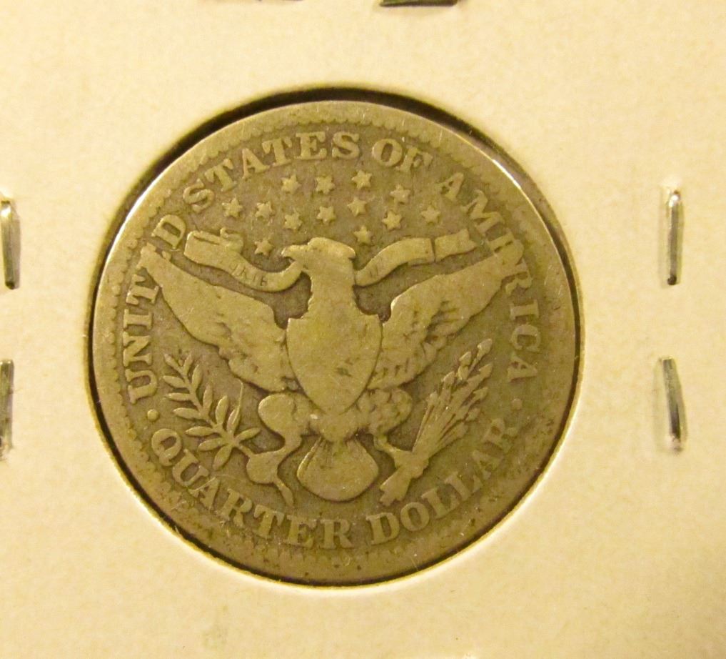 1900 Barber Quarter, G+ full rims, value $9