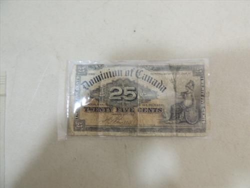 1900 CANADIAN 25 CENT FRACTIONAL CURRENCY. AS SHOWN. VIEW PICTURE FOR DETAIL.