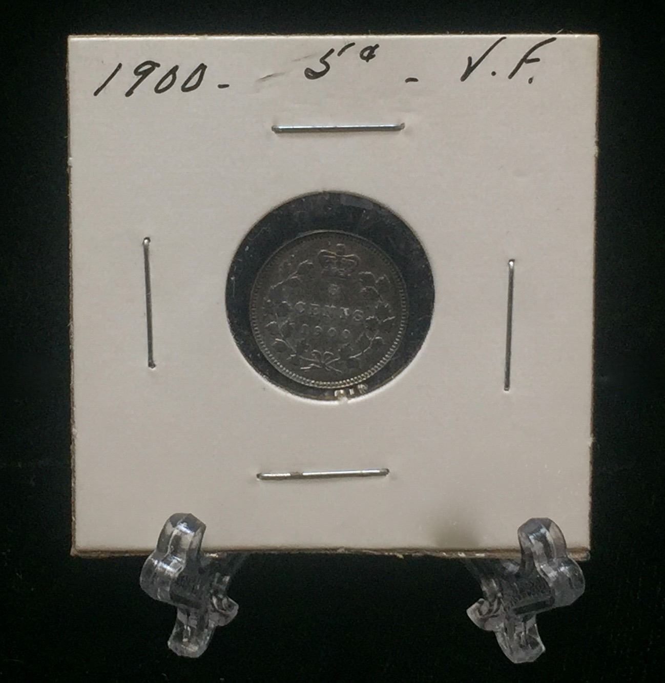 Lot 300; Royal Mint, 1900 Canada 5-Cents Silver Coin Very Fine, Silver .925, Queen Victoria Effigy, Condition as Pictured