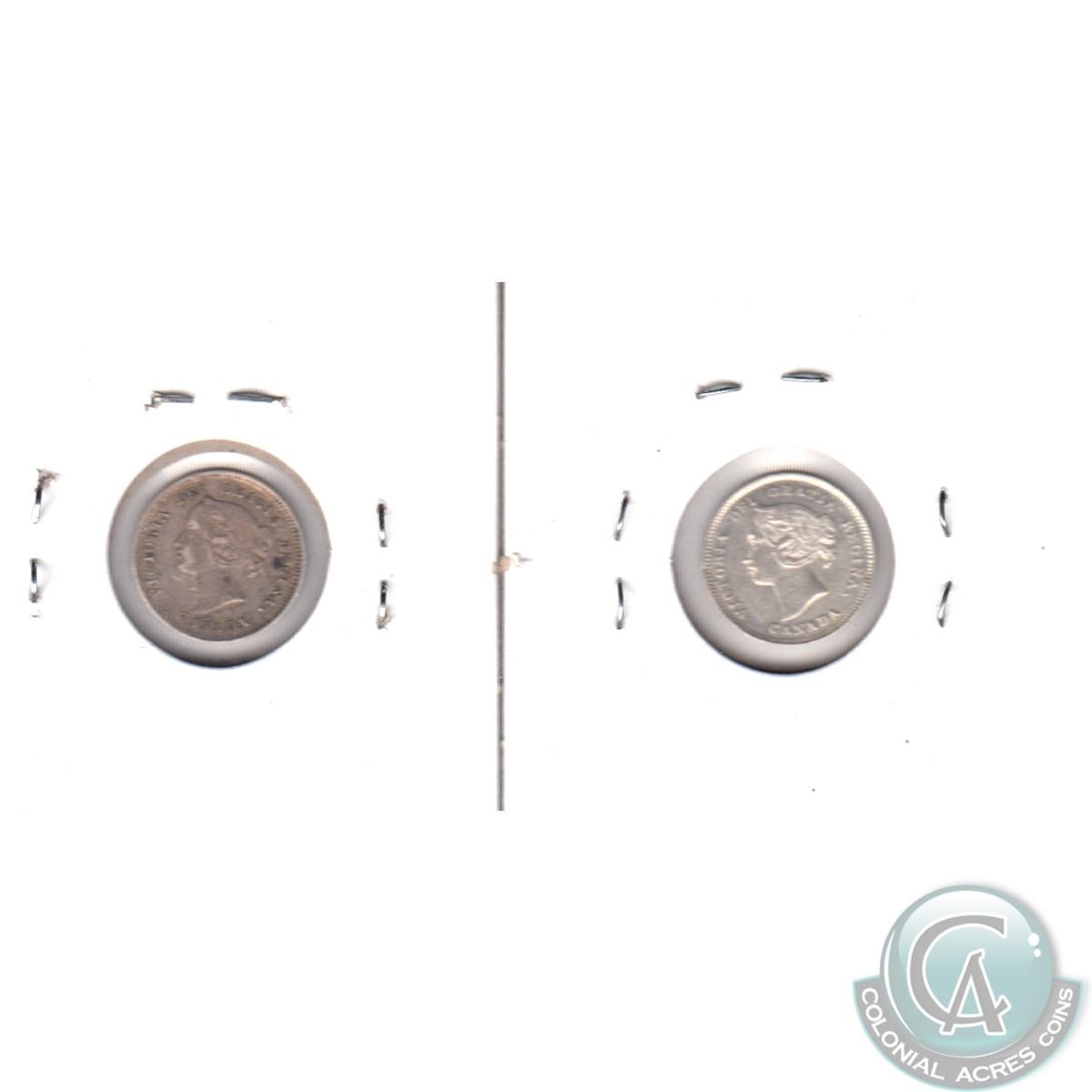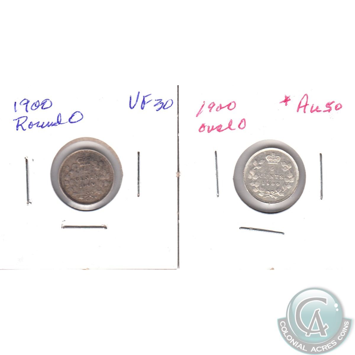 1900 Canada 5-cent Oval AU, 1900 Canada 5-cent Round VF-EF. 2pcs