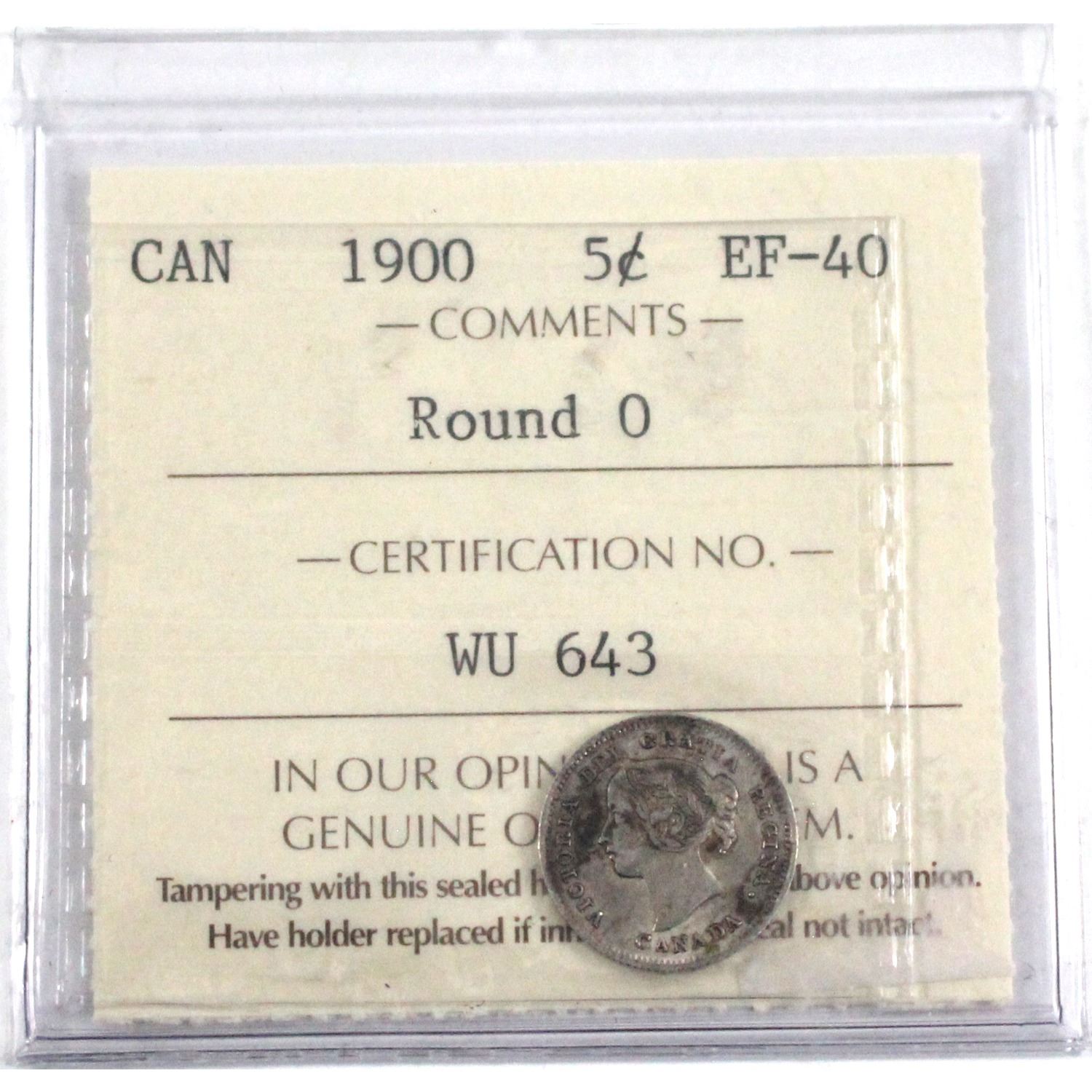 1900 Canada 5-cent Round 0 ICCS Certified EF-40.