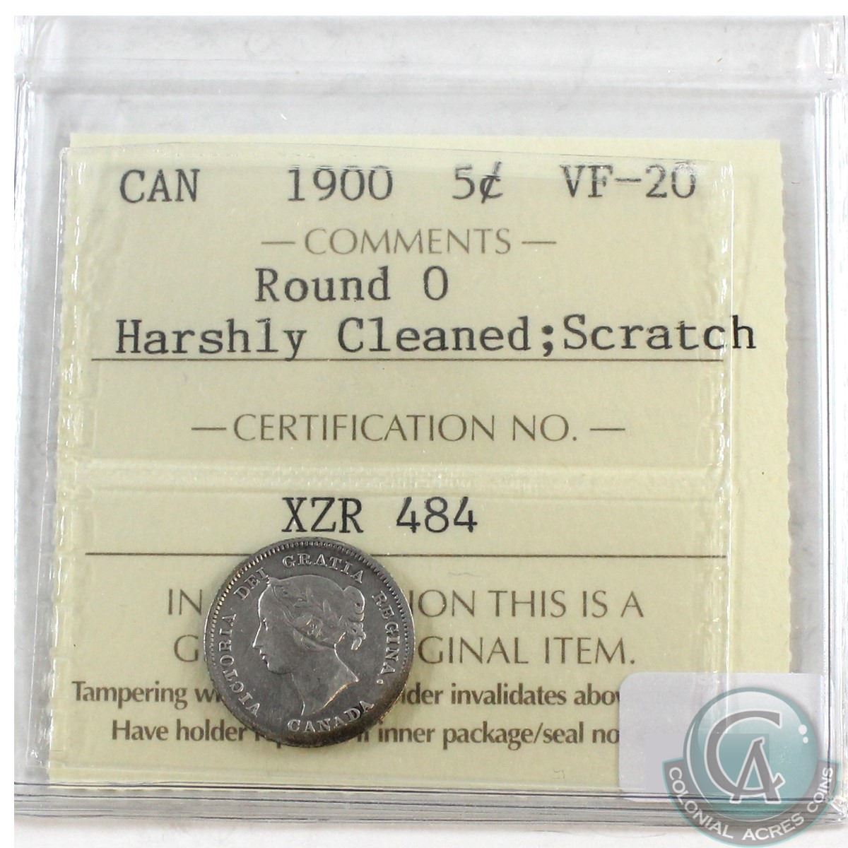 1900 Canada Silver 5-cents Round 0 ICCS Certified VF-20 Harshly cleaned/scratched
