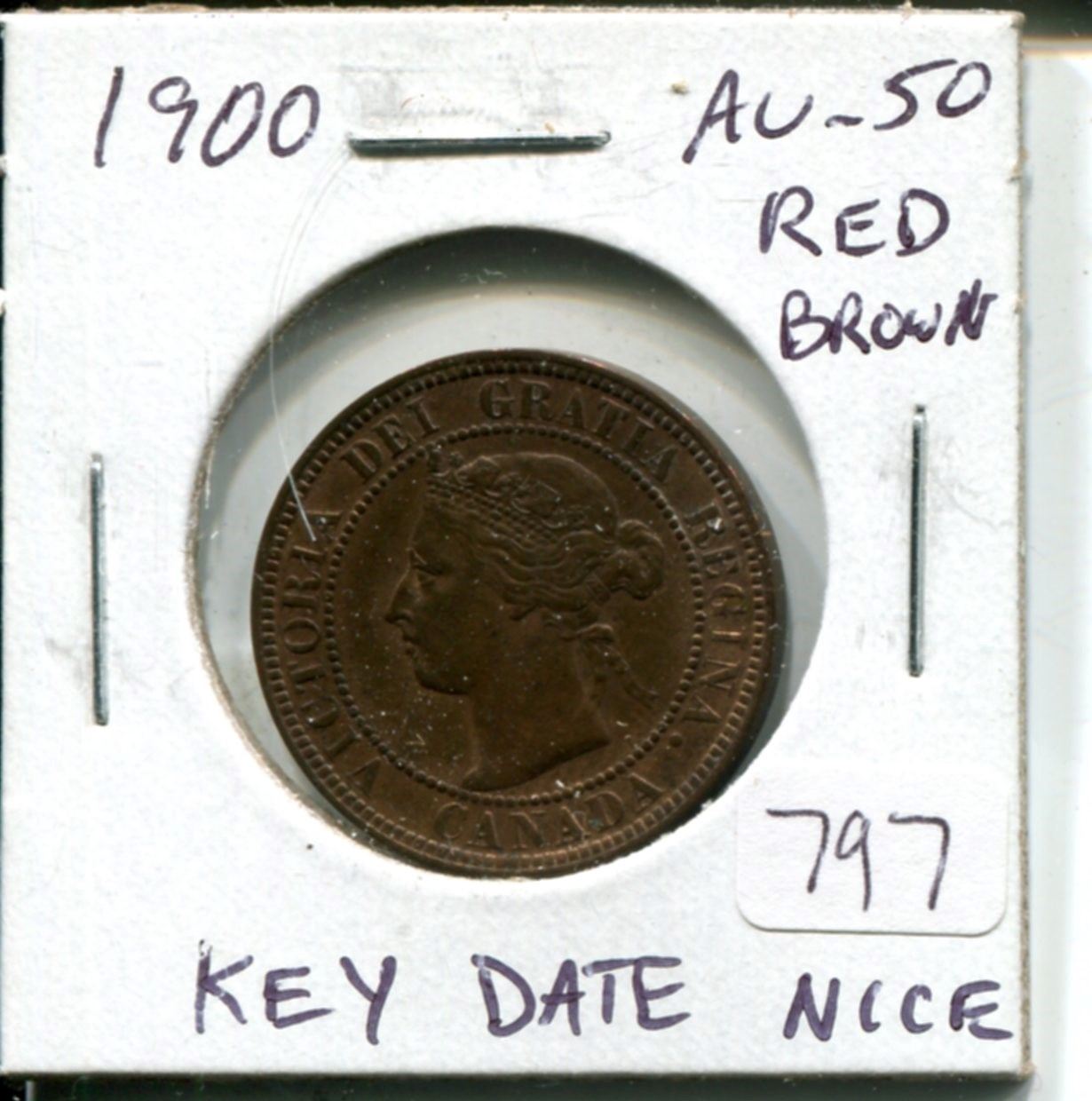 1900 Canadian Victorian Large Cent. Key Date. AU-50 Red & Brown. Nice.