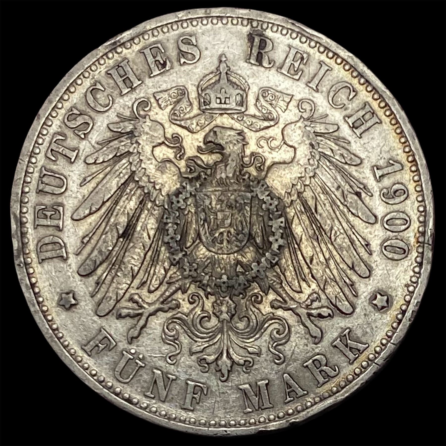 1900-D Germany Silver 5 Reichsmark NEARLY UNCIRCULATED