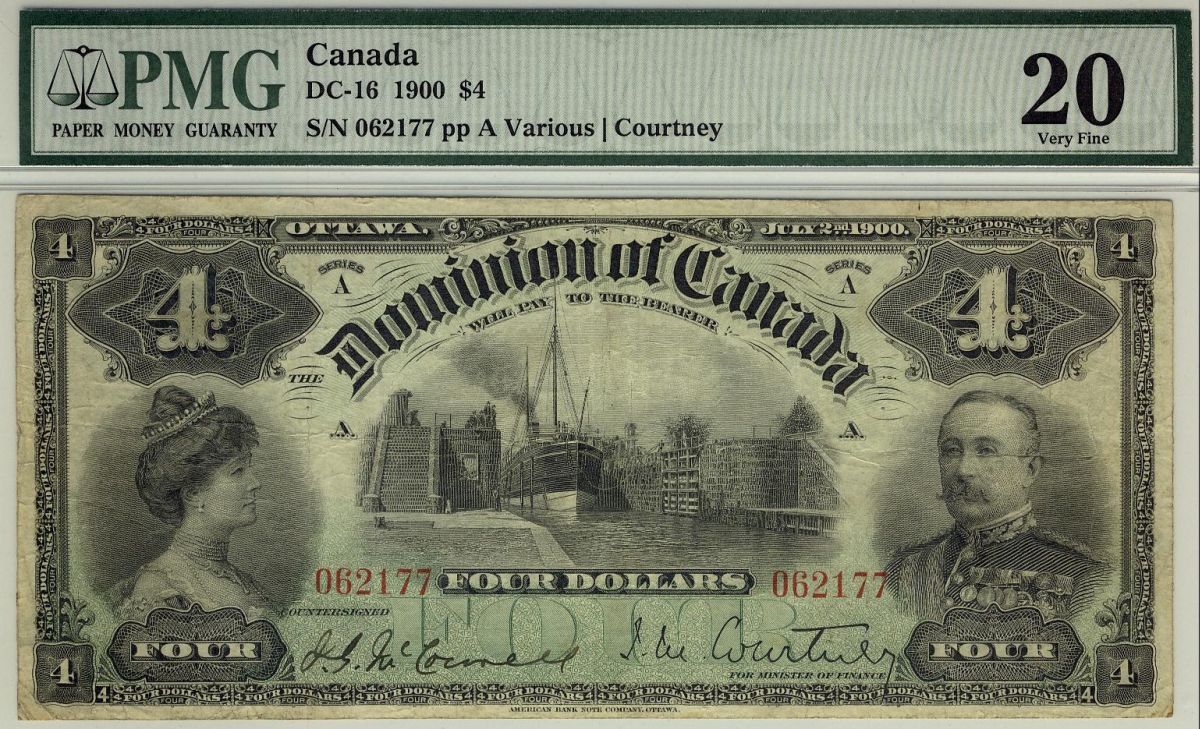 1900 DC-16 $4 #062177 PMG VF20. A decent example