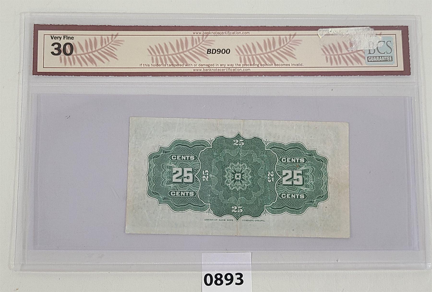 1900 DOMINION OF CANADA 25 CENT BANKNOTE