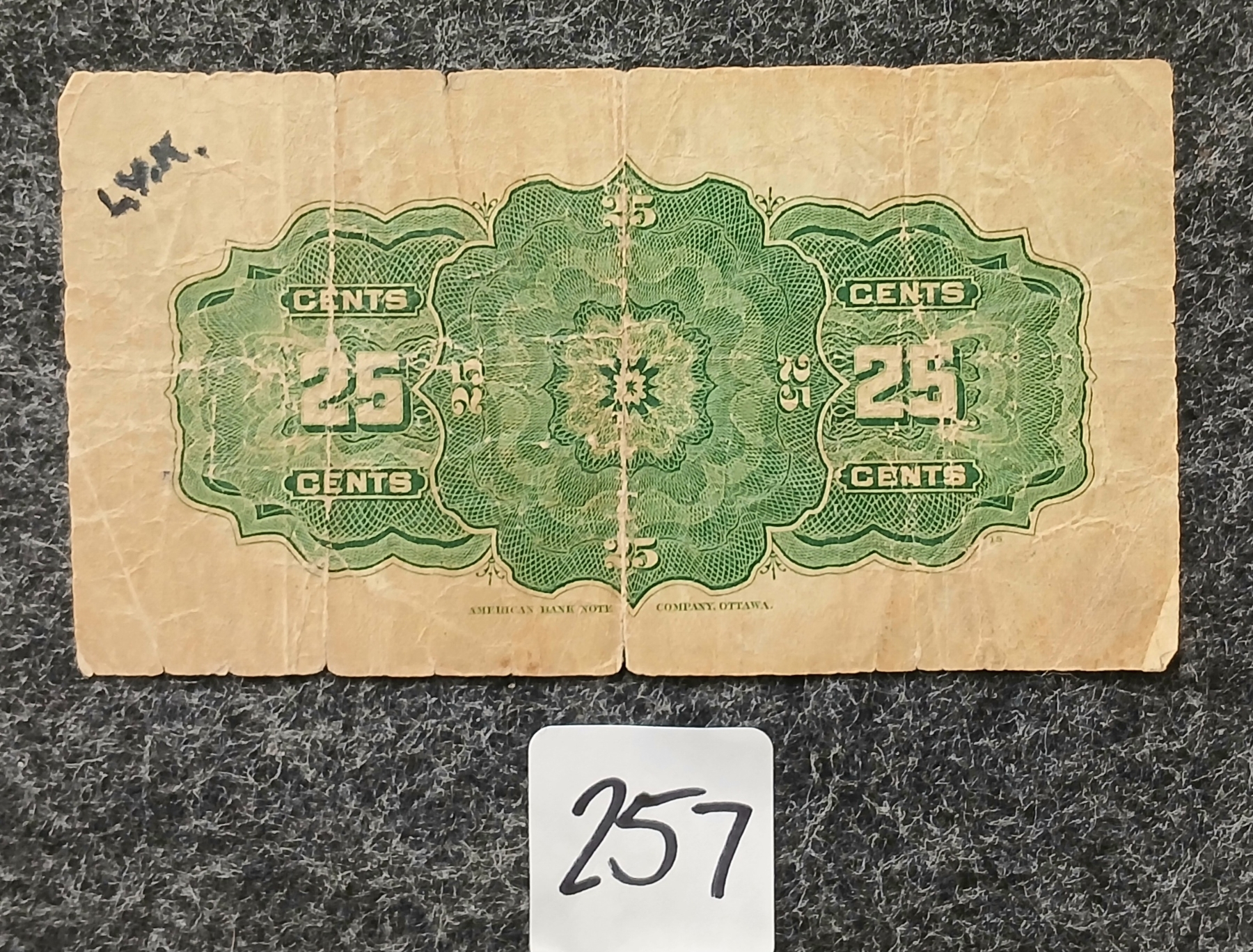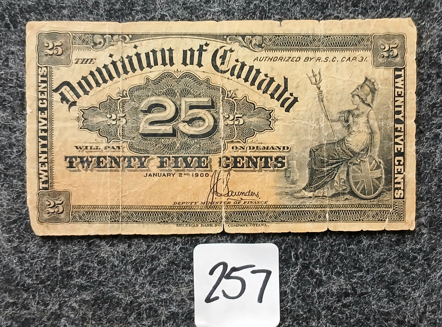 1900 DOMINION OF CANADA 25 CENT SHINPLASTER