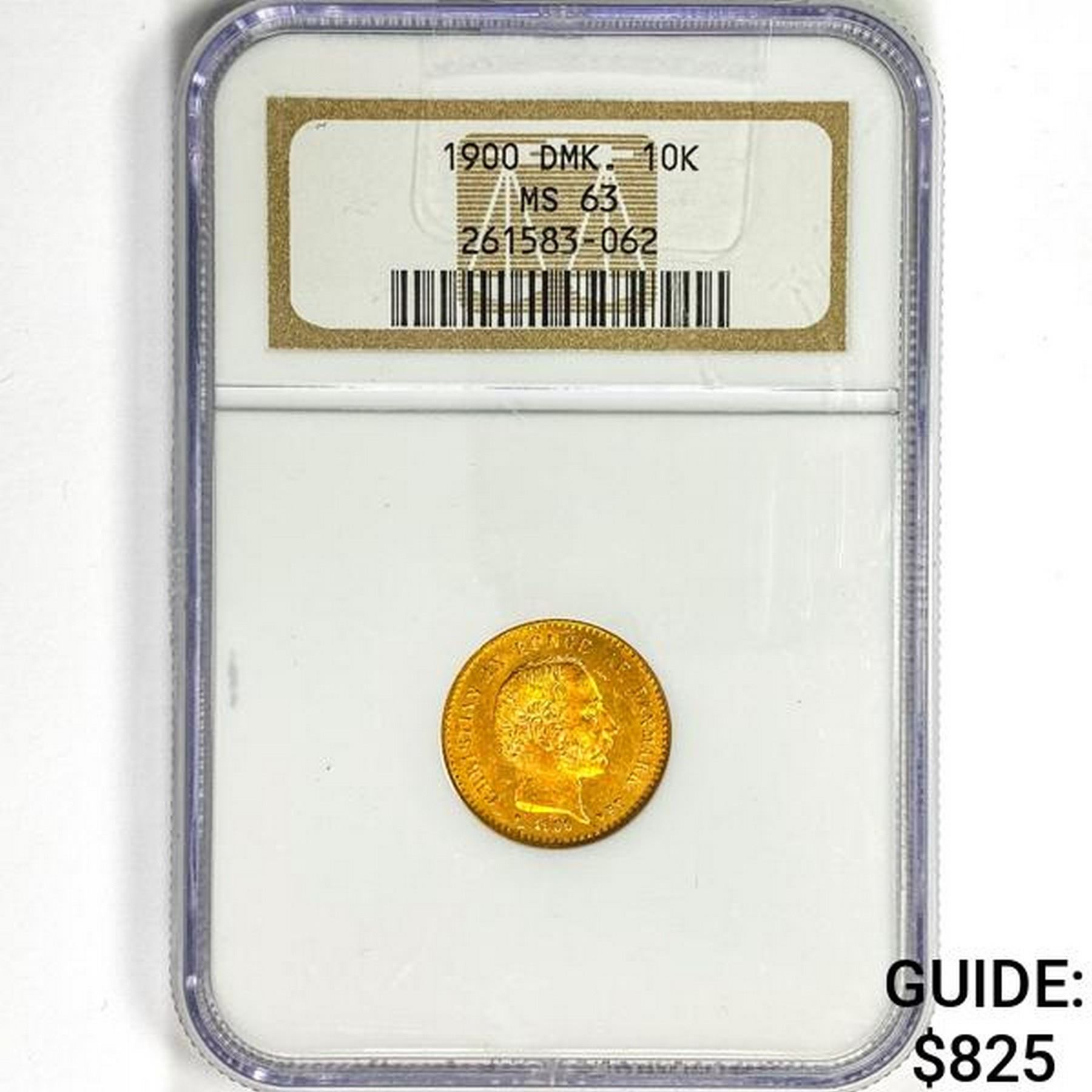 1900 Denmark 10 Kroner .1296oz. Gold NGC MS63