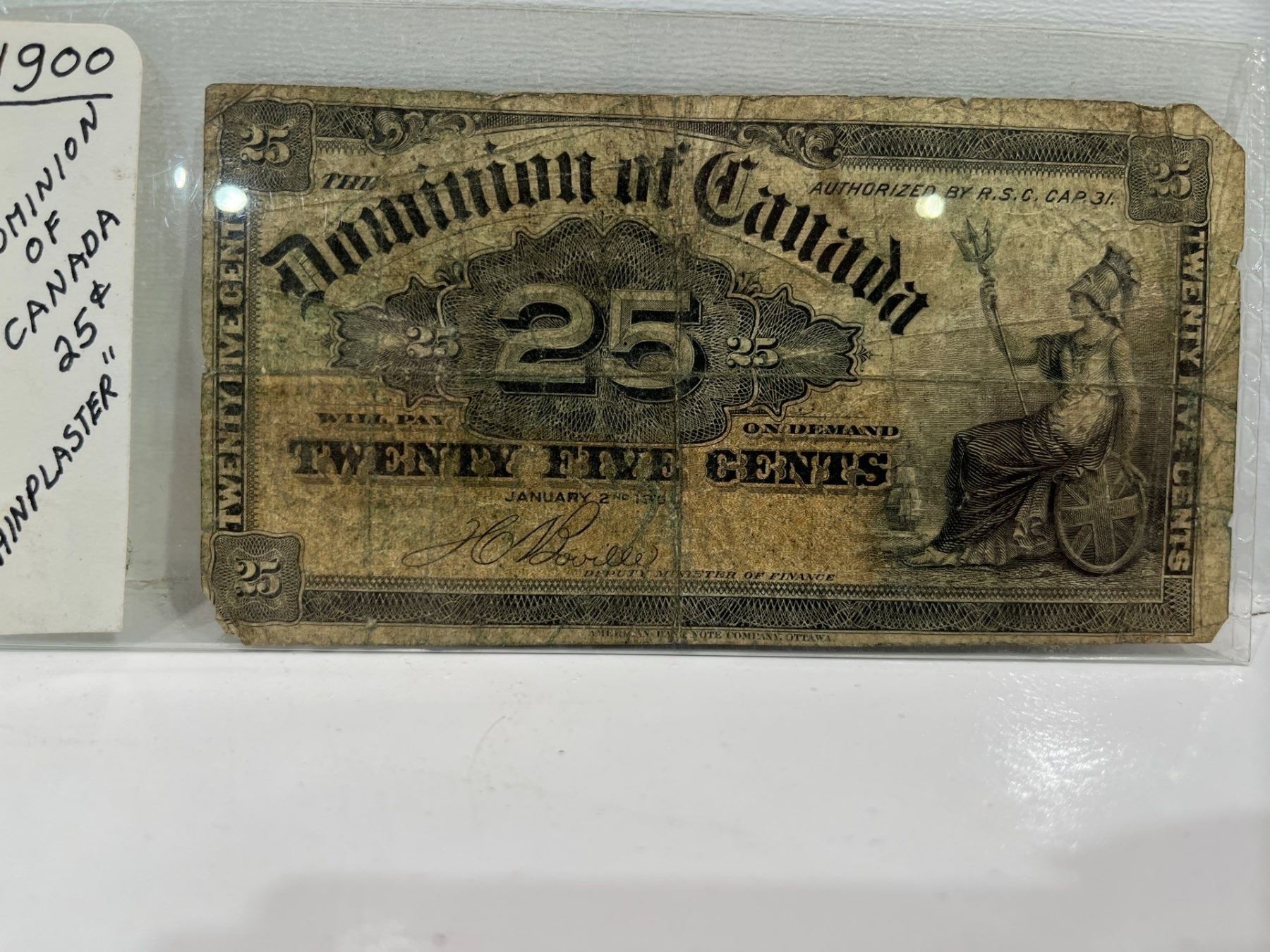 1900 Dominion of Canada 25 Cent Note SN N/A Boville
