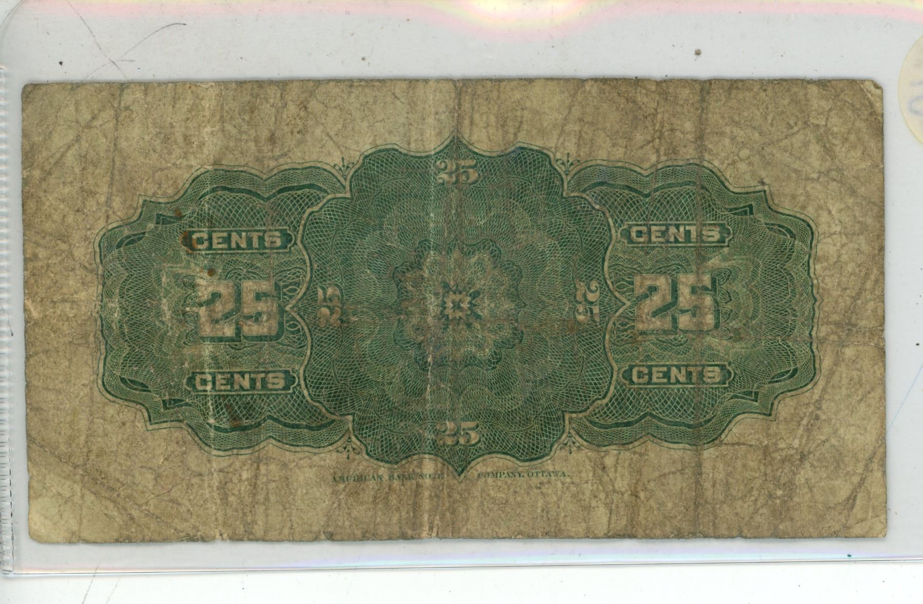 1900 Dominion of Canada 25 Cents Shinplaster.