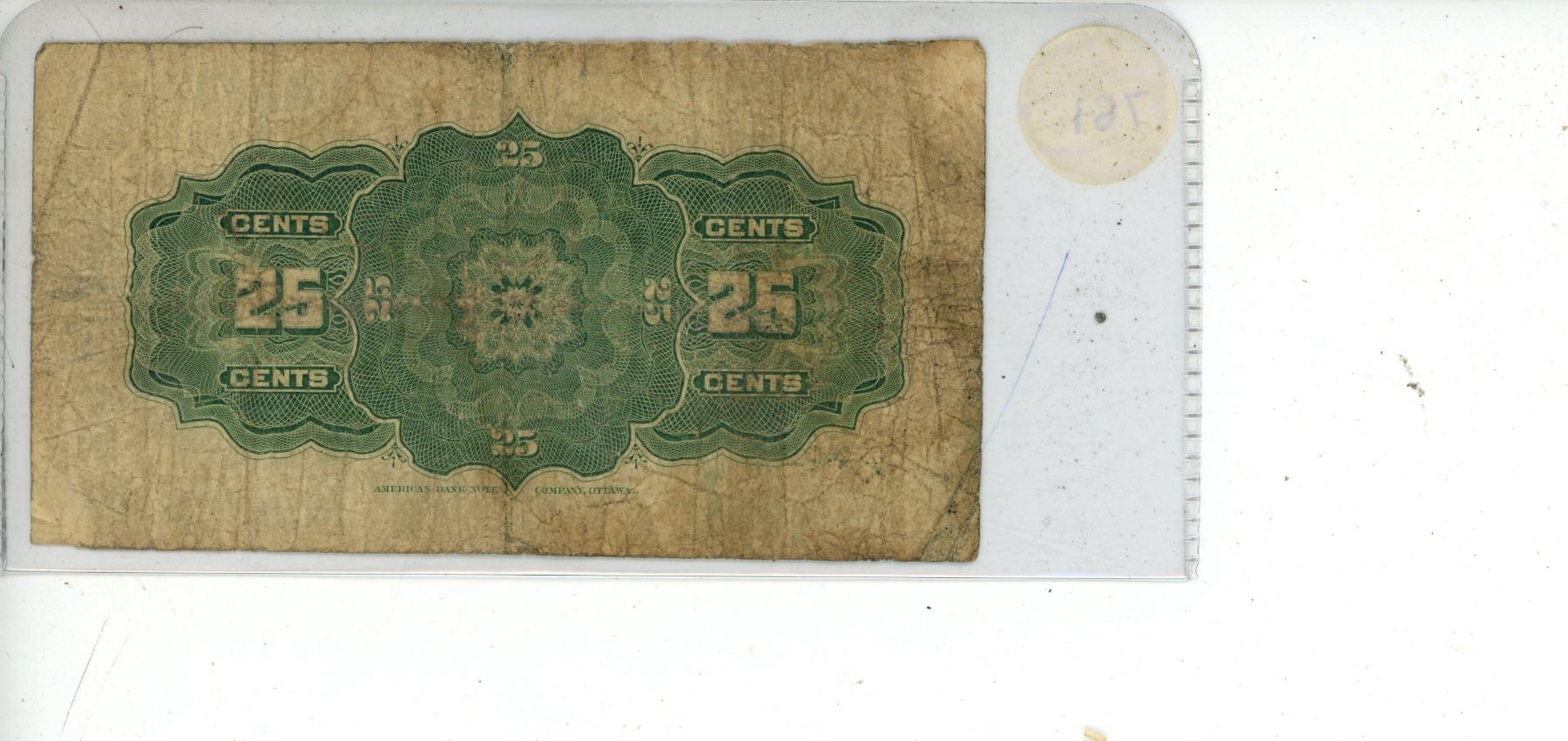 1900 Dominion of Canada 25 Cents Shinplaster.