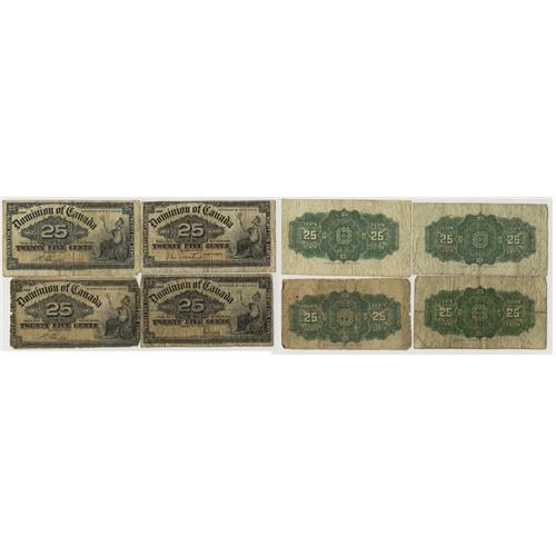 4 shinplaters in average circulated VG condition with 1 Good. Heavy folds, creases and a couple with pinholes. 1 each Courtney; Saunders variety, 2xBoville. No return.