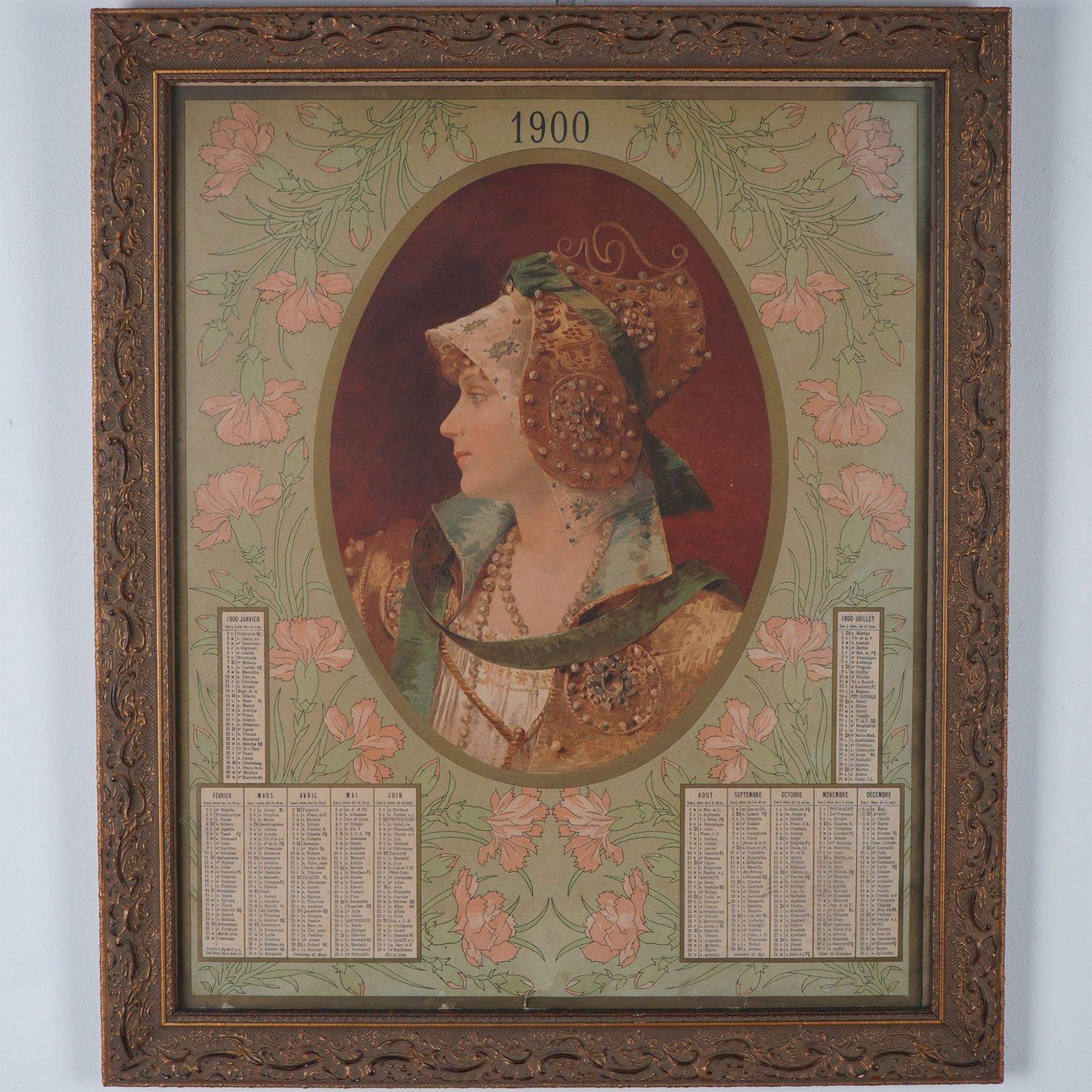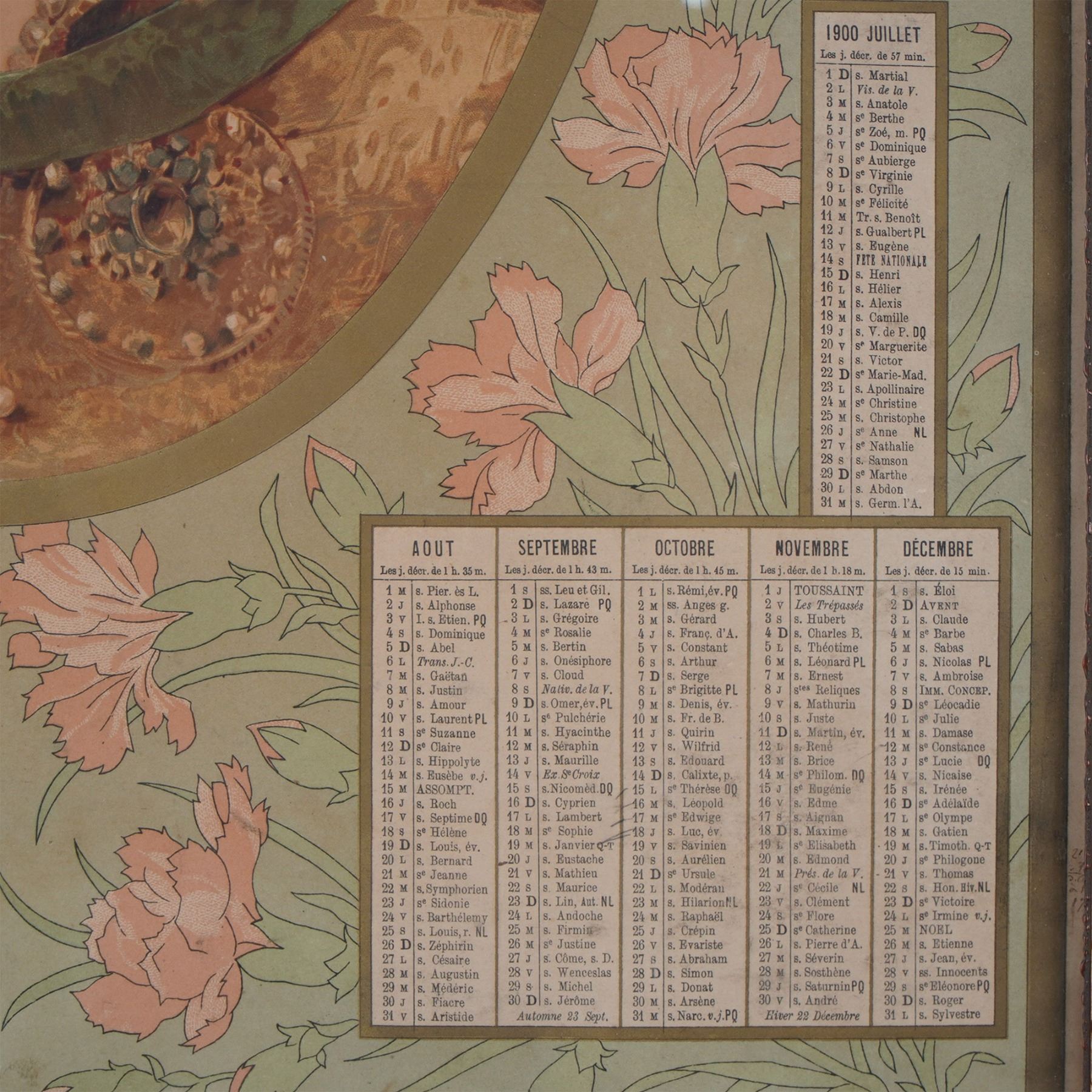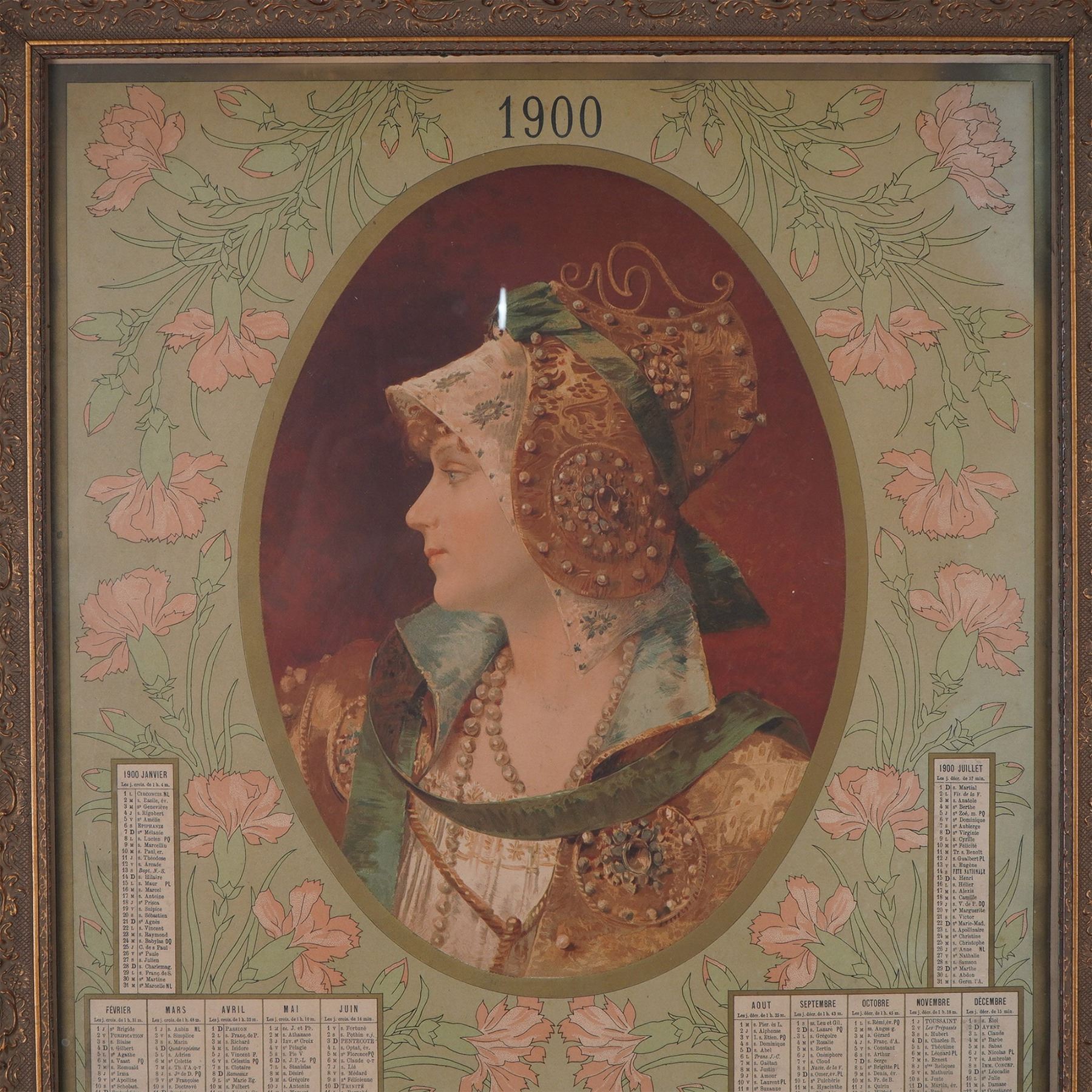 1900 French Art Nouveau Calendar Lithograph, Framed