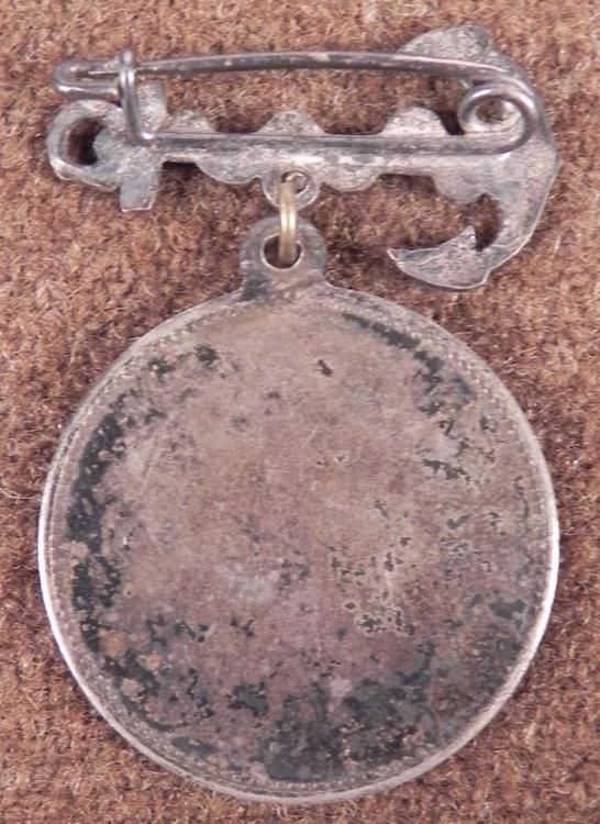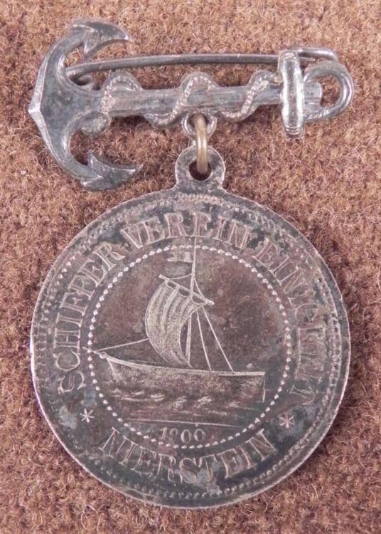 1900 IMPERIAL GERMAN NAVAL MEDAL-"SCHIFFERVEREIN EINIGKEIT NIERSTEIN-HANGS FROM ANCHORGREAT 100+ YEAR OLD GERMAN NAVAL MEDAL IN SILVER-FOULED ANCHOR TOP-SUSPENDED MEDAL WITH OLD NAVAL SHIP -MEDAL 1 1/8" DIAMETER