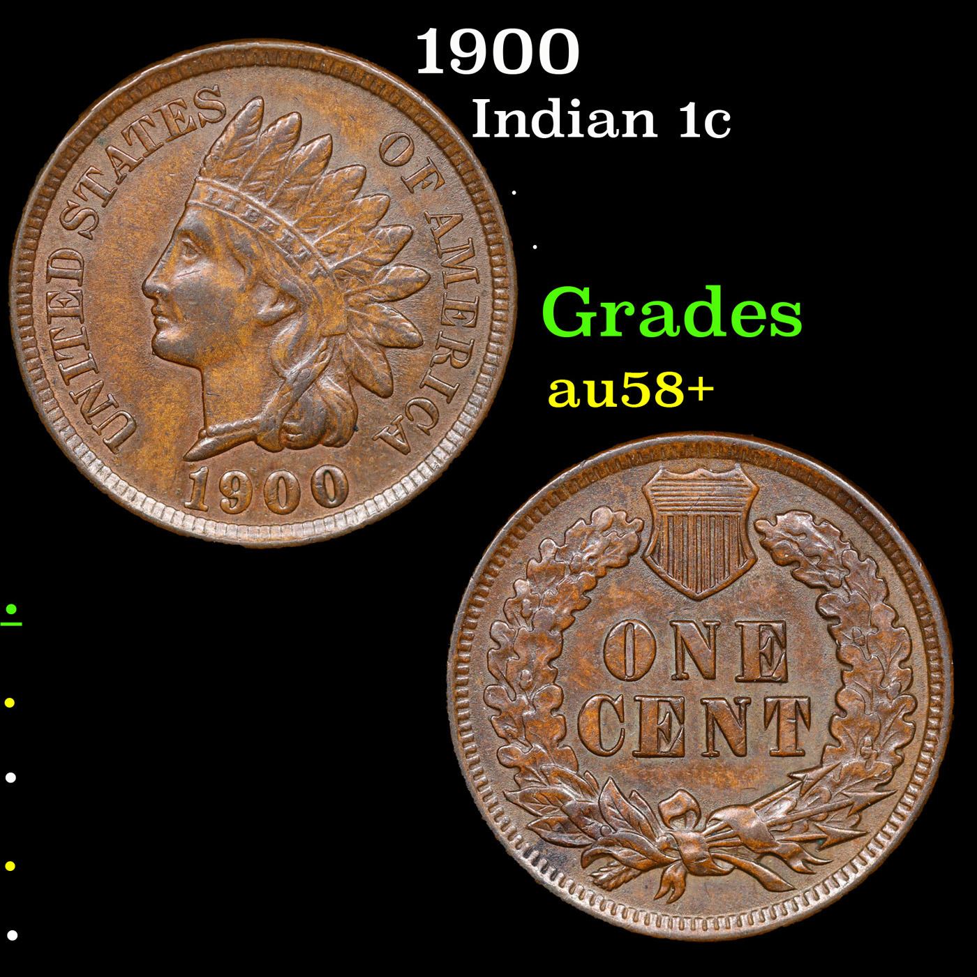 1900 Indian Cent 1c Grades Choice AU/BU Slider+.
