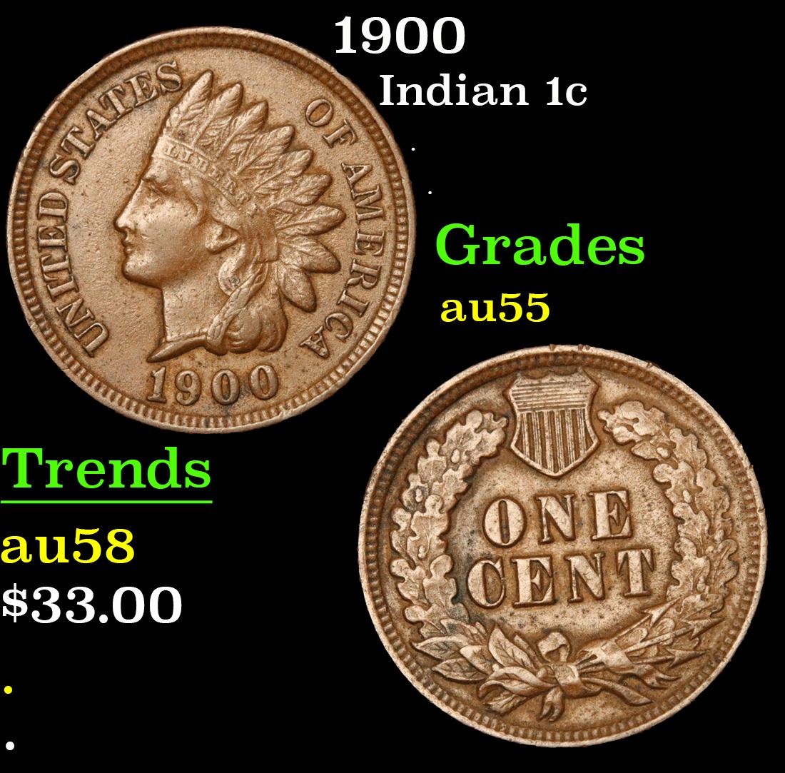 1900 . . Indian Cent 1c Grades Choice AU.