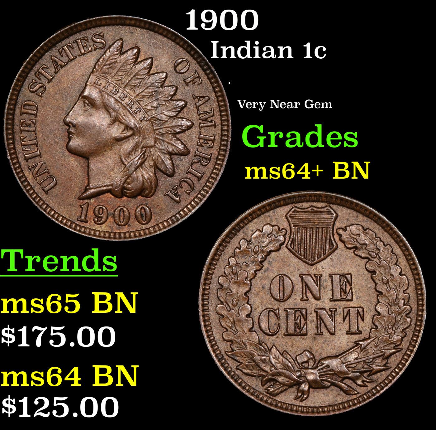 1900 Indian Cent 1c Grades Choice+ Unc BN.