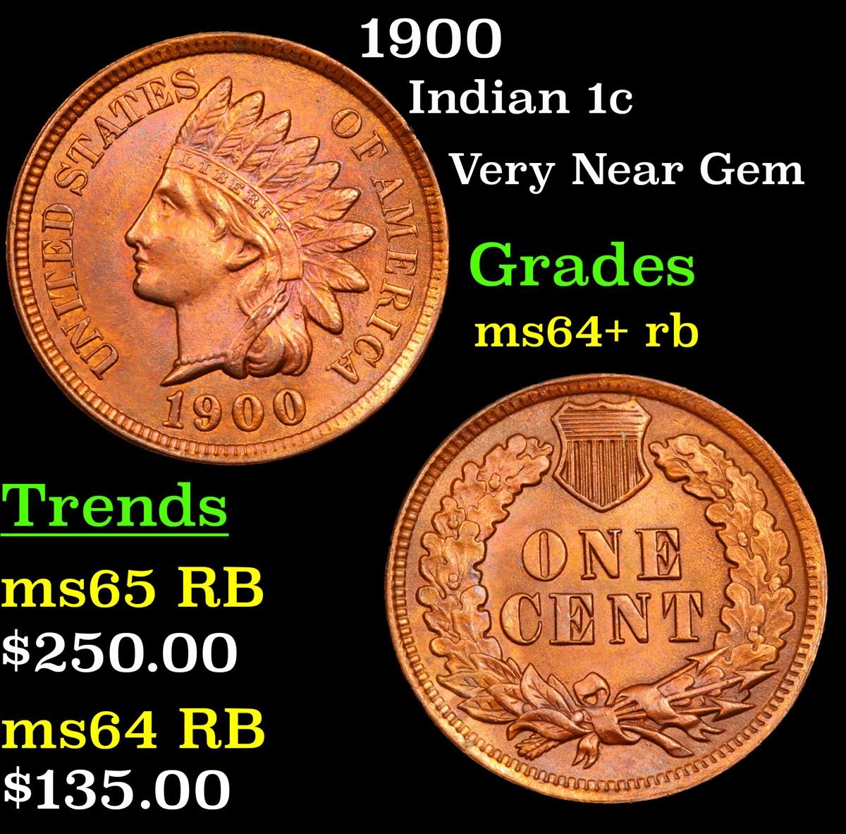 1900 Indian Cent 1c Grades Choice+ Unc RB.