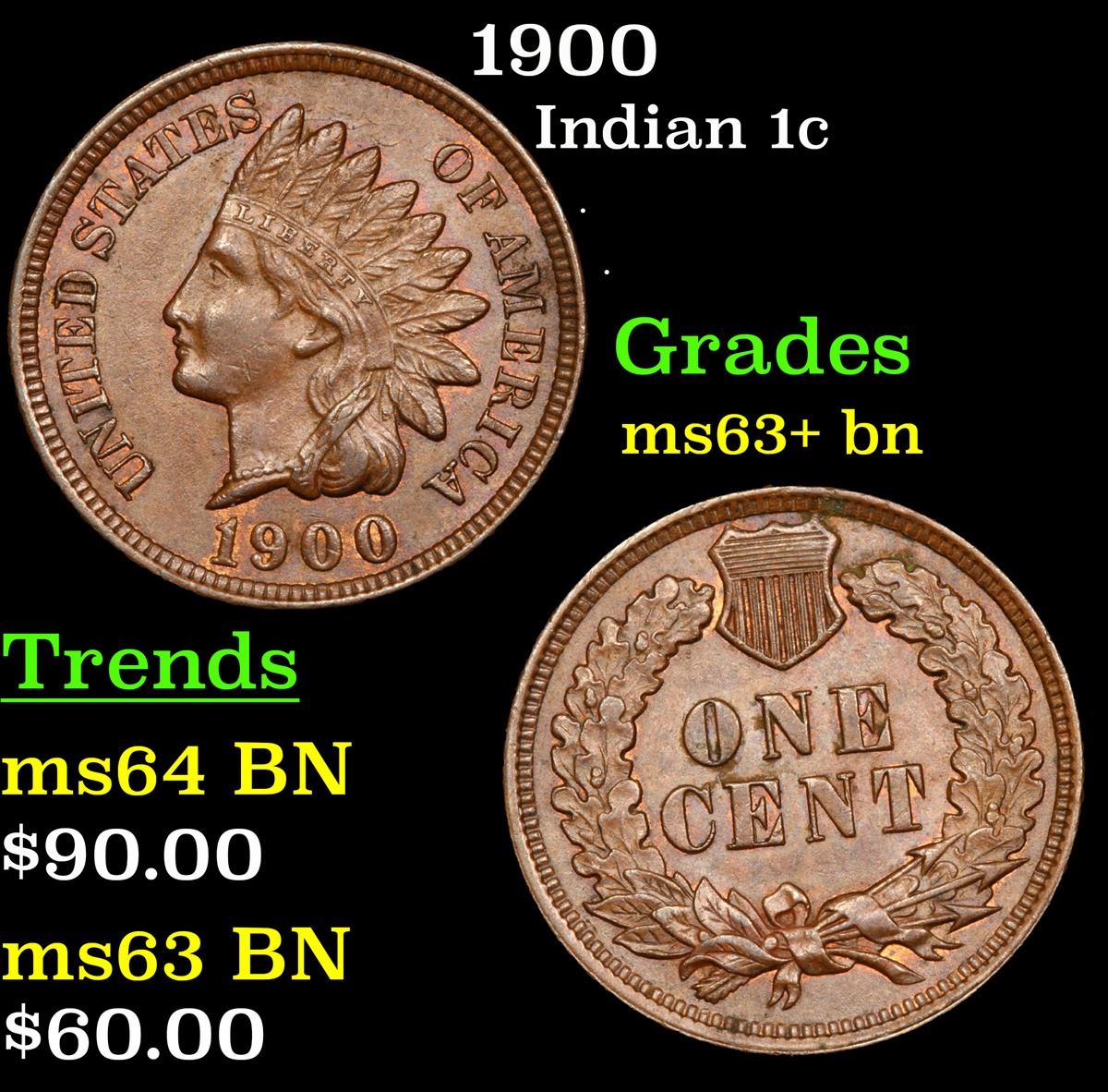 1900 . . Indian Cent 1c Grades Select+ Unc BN.
