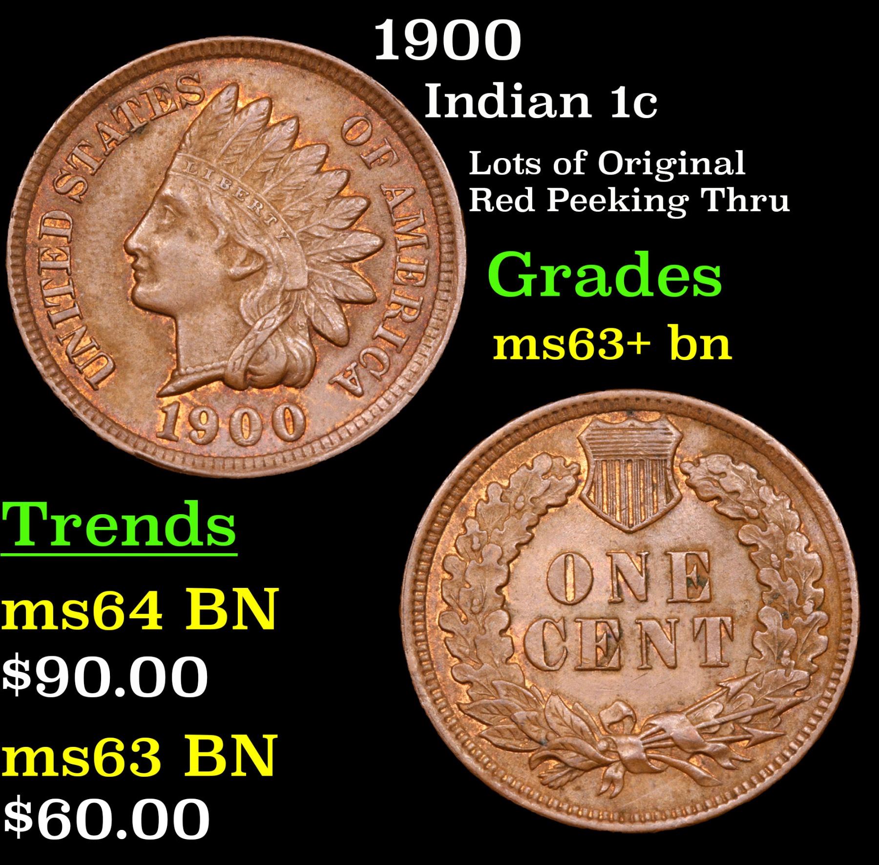 1900 Lots of Original Red Peeking Thru . Indian Cent 1c Grades Select+ Unc BN.