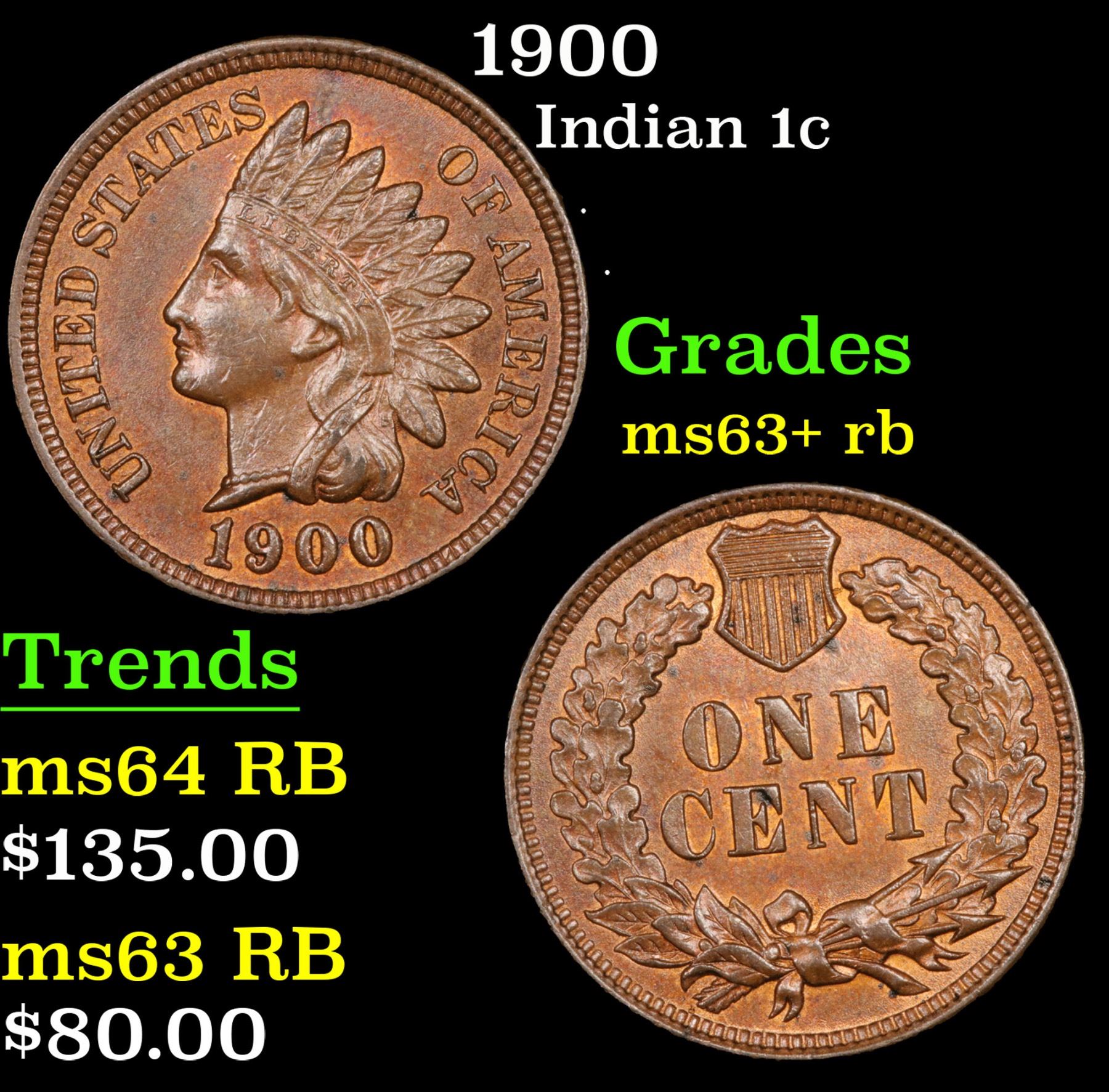 1900 . . Indian Cent 1c Grades Select+ Unc RB.