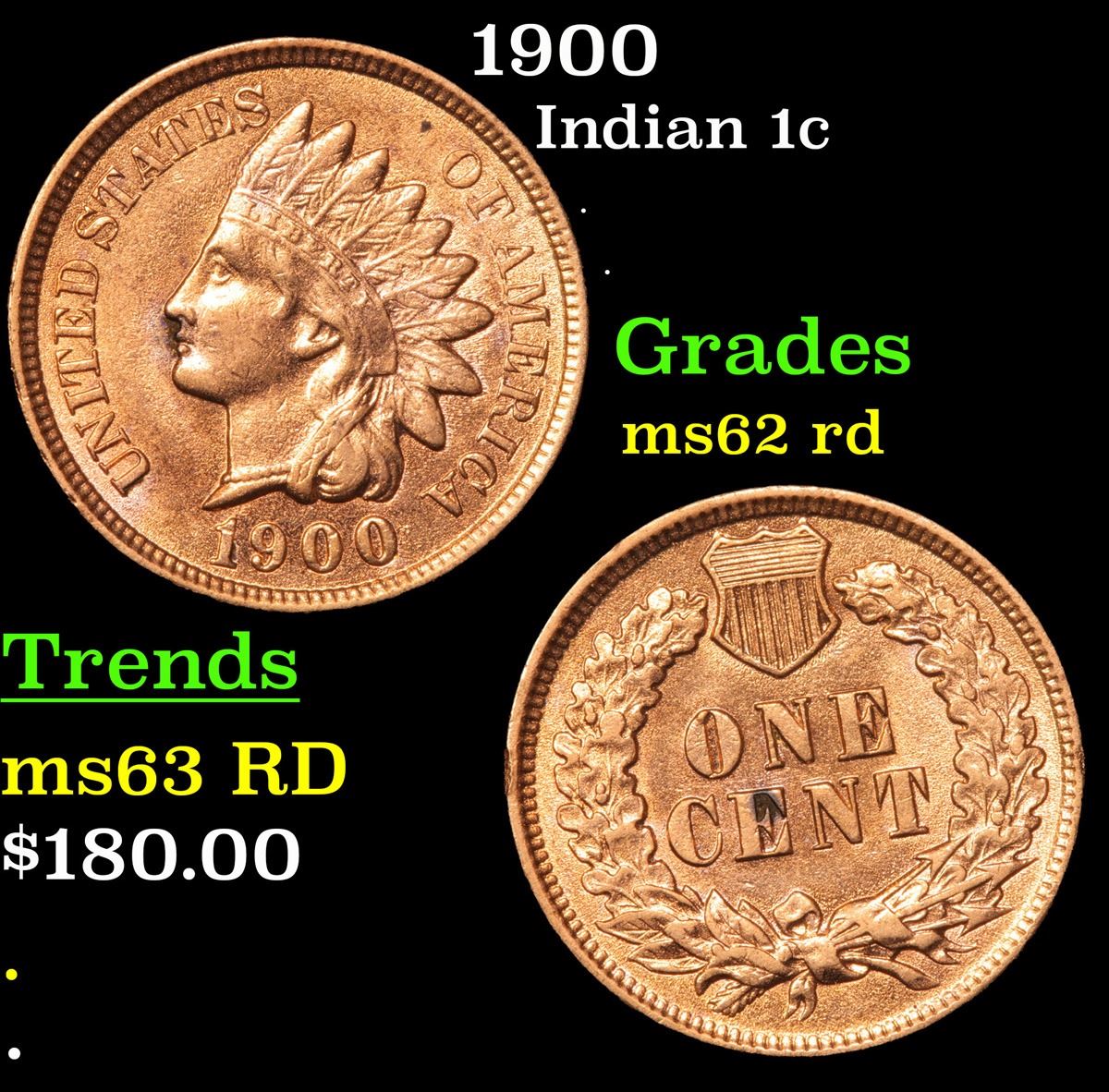 1900 . . Indian Cent 1c Grades Select Unc RD.