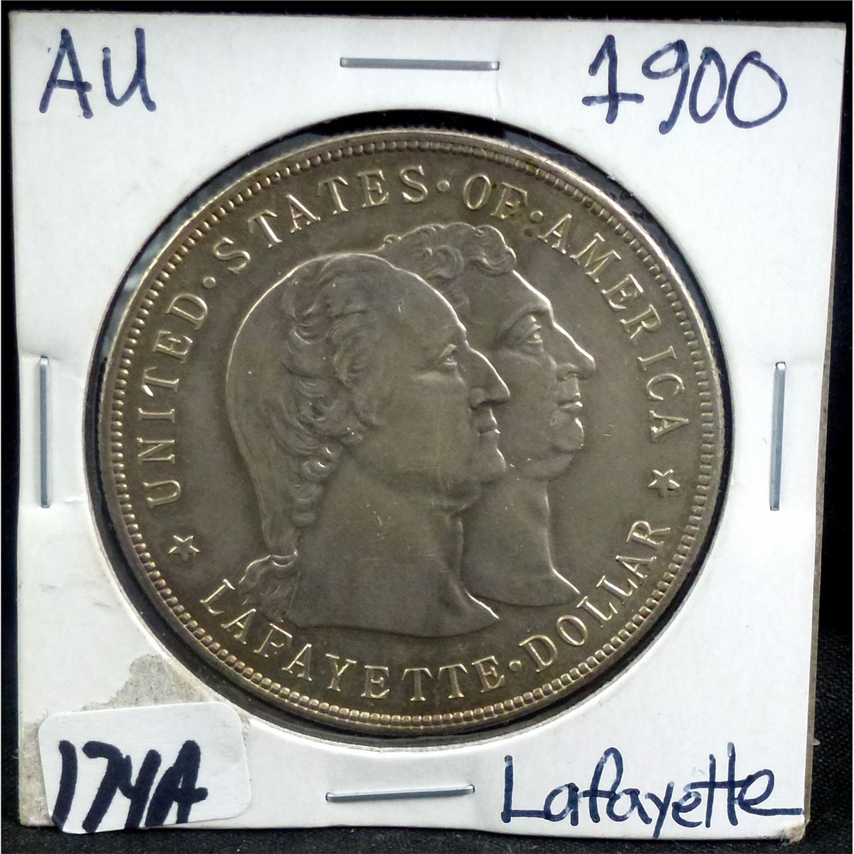 1900 "LAFAYETTE" COMMEMORATIVE DOLLAR - SELLER GRADES AT AU (THE CURRENT COIN WORLD TRENDS LISTS AN AU50 @ $500.00 AND AN MS60 @ $850.00)