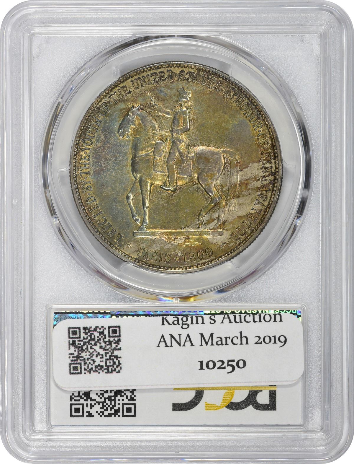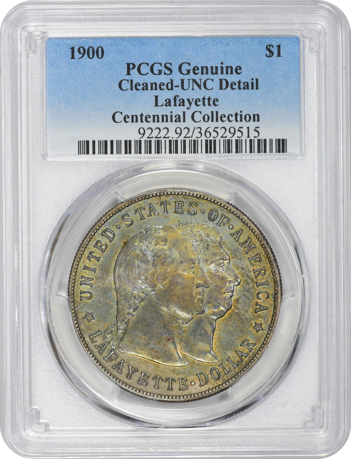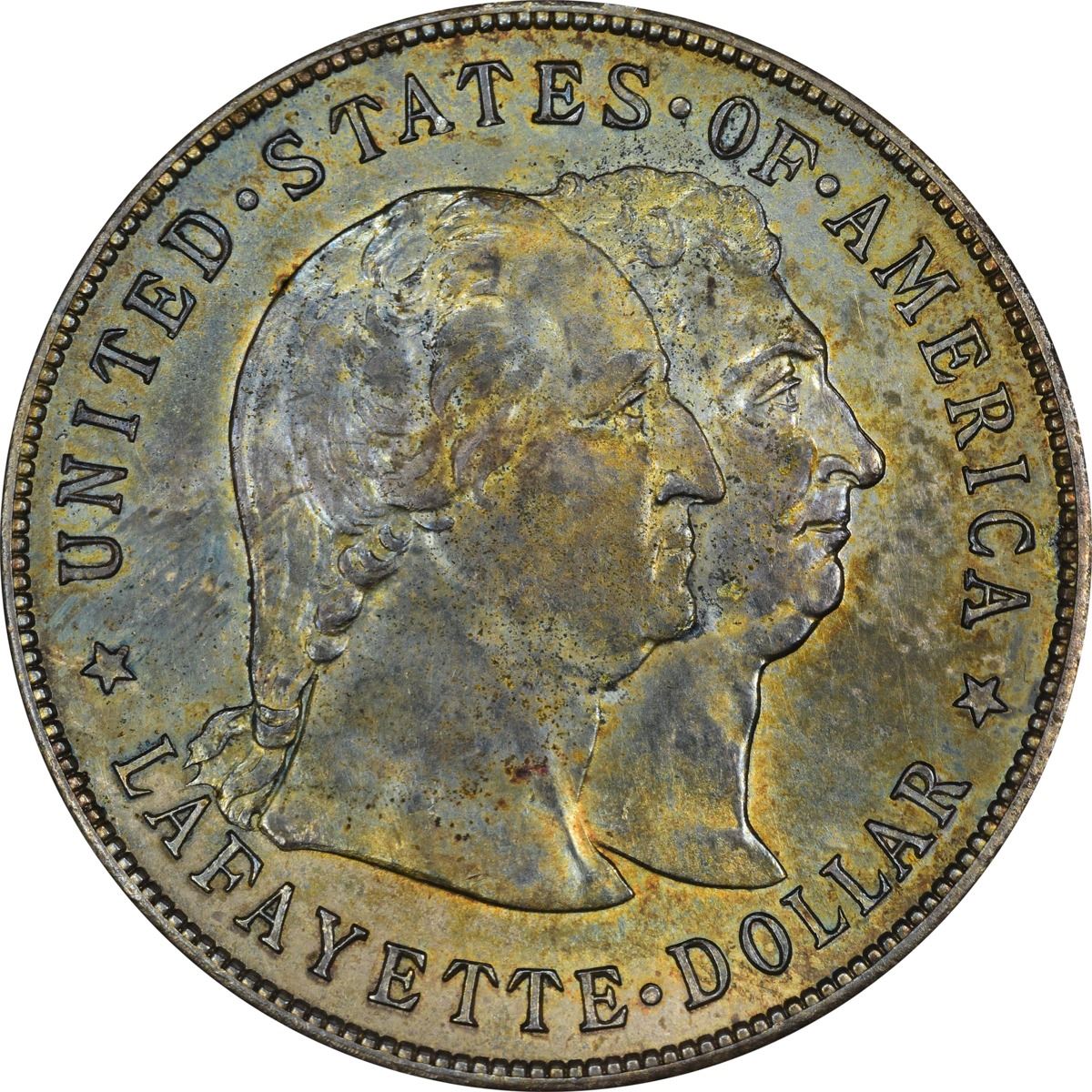 Varied shades of steel-blue and a touch of rose adorn the obverse, the reverse largely shades of crimson with some blue. Lightly cleaned at some point but not noticeably so without study. PCGS #9222