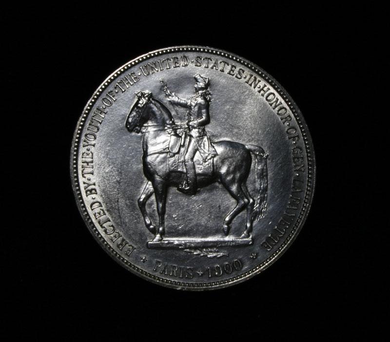 Nice original example of this very scarce and only Dollar Commemorative of the entire old Silver Commemorative series. Struck to commemorate General Lafayette and help cover the costs of a statue given by the US to the city of Paris. The coins were also to celebrate the Exposition in Paris in 1900. Also 1899 was the 100th anniversary of Washington's death When examining a Lafayette Dollar evidence of wear first appears on Washington's cheekbone and on Lafayette's lower curls. On the reverse, check the highest points of the design—the boot, thigh and rear leg of the horse. Also it is noted that This coin has a few Firsts, it is the first commemorative dollar ever struck, the first officially issued coin to depict a former President, and the first coin to show the same person (Lafayette) on both sides. Coin World's Coin Values lists ms63 at $2000 and The Wholesale Greysheet lists ms63 at $1500. Estimated Value $1750