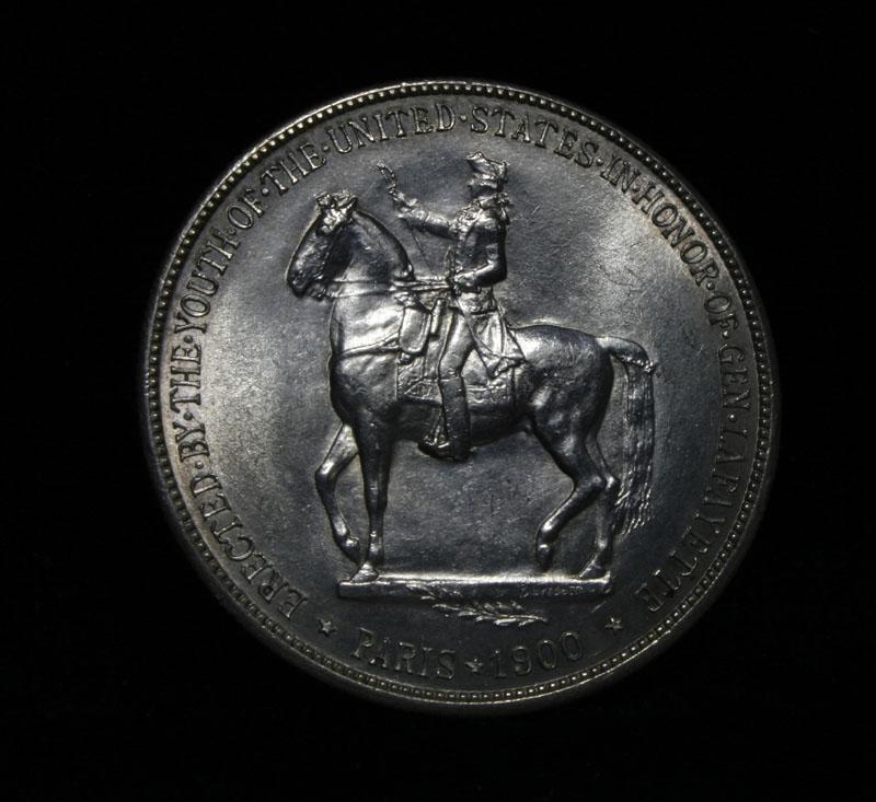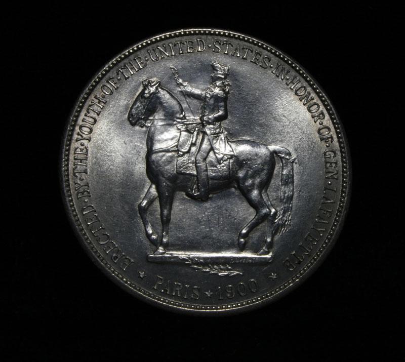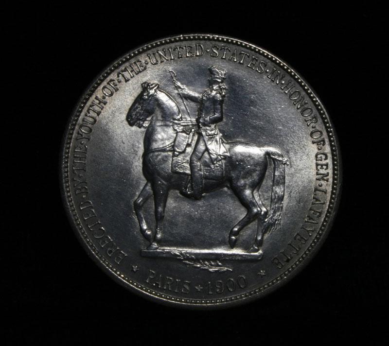 Nice original example of this very scarce and only Dollar Commemorative of the entire old Silver Commemorative series. Good Luster and nice Strike. I will offer my personal buy back guarantee, that this coin is all original and will not come back Ungradeable by any major grading service. Struck to commemorate General Lafayette and help cover the costs of a statue given by the US to the city of Paris. The coins were also to celebrate the Exposition in Paris in 1900. Also 1899 was the 100th anniversary of Washington's death When examining a Lafayette Dollar evidence of wear first appears on Washington's cheekbone and on Lafayette's lower curls. On the reverse, check the highest points of the design—the boot, thigh and rear leg of the horse. Also it is noted that This coin has a few Firsts, it is the first commemorative dollar ever struck, the first officially issued coin to depict a former President, and the first coin to show the same person (Lafayette) on both sides. Coin World's Coin Values lists ms63 at $2000 and The Wholesale Greysheet lists ms63 at $1500. Estimated Value $1750