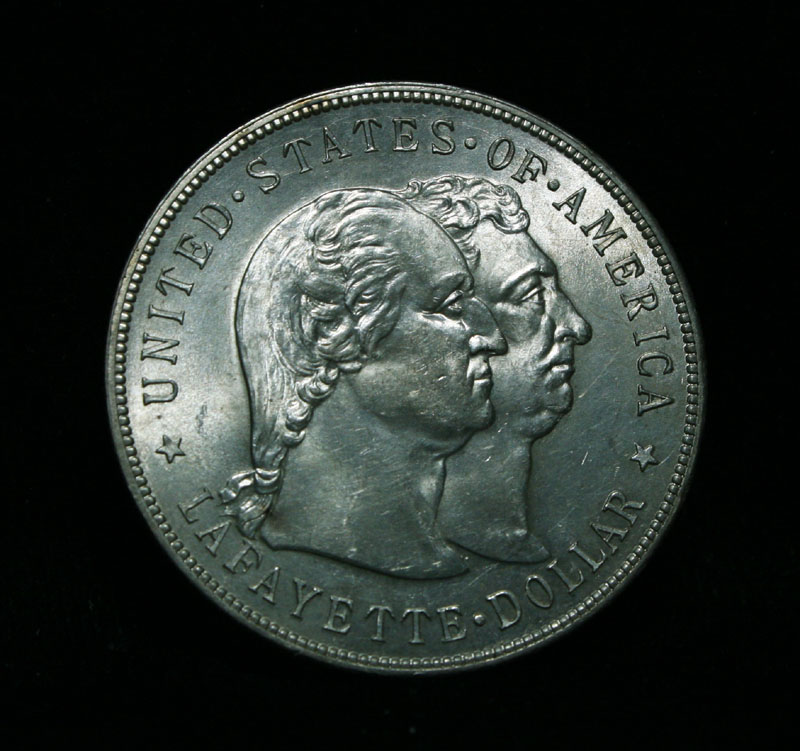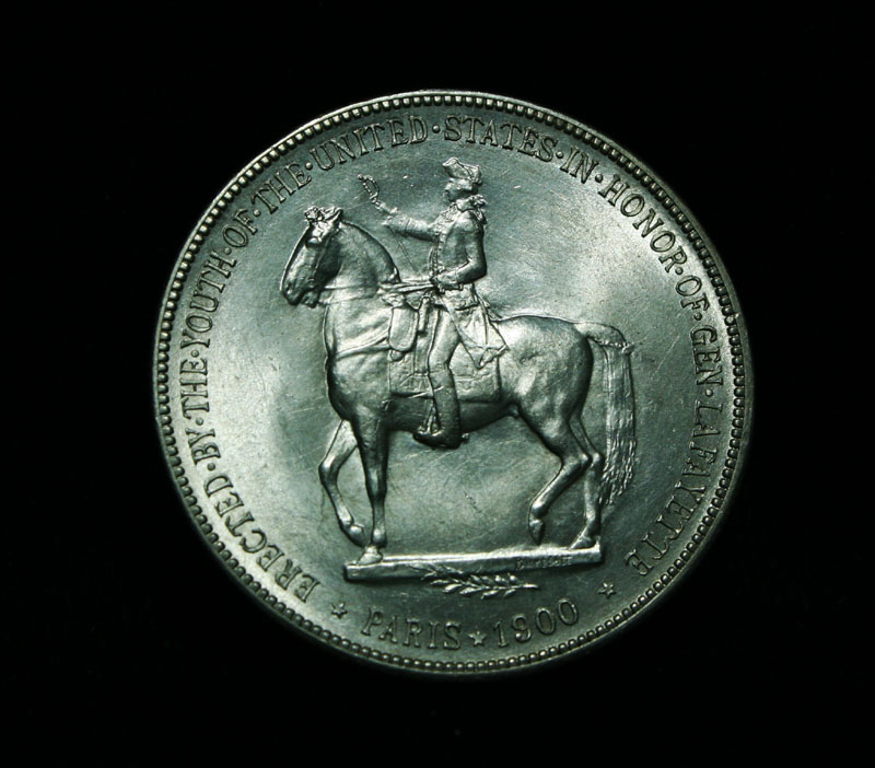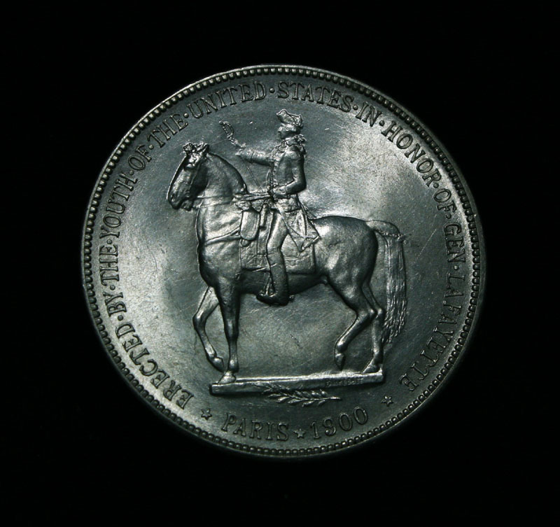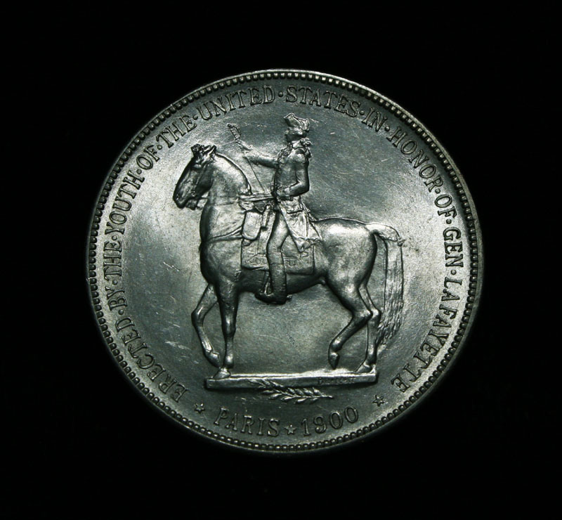 Very Attractive and lustrous example of this very scarce and only Dollar Commemorative of the entire old Silver Commemorative series. Struck to commemorate General Lafayette and help cover the costs of a statue given by the US to the city of Paris. The coins were also to celebrate the Exposition in Paris in 1900. Also 1899 was the 100th anniversary of Washington's death When examining a Lafayette Dollar evidence of wear first appears on Washington's cheekbone and on Lafayette's lower curls. On the reverse, check the highest points of the design—the boot, thigh and rear leg of the horse. Also it is noted that This coin has a few Firsts, it is the first commemorative dollar ever struck, the first officially issued coin to depict a former President, and the first coin to show the same person (Lafayette) on both sides. Coin World's Coin Values lists ms63 at $2000 and The Wholesale Greysheet lists ms63 at $1500. Estimated Value $1750