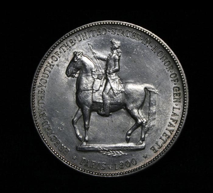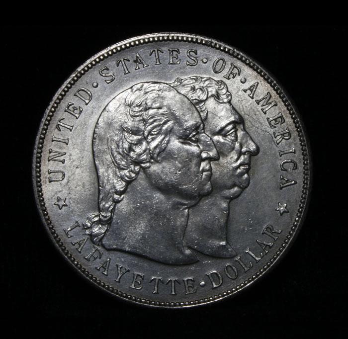 Nice almost White Uncirculated example of this very scarce and only Dollar Commemorative of the entire old Silver Commemorative series. Struck to commemorate General Lafayette and help cover the costs of a statue given by the US to the city of Paris. The coins were also to celebrate the Exposition in Paris in 1900. Also 1899 was the 100th anniversary of Washington's death When examining a Lafayette Dollar evidence of wear first appears on Washington's cheekbone and on Lafayette's lower curls. On the reverse, check the highest points of the design—the boot, thigh and rear leg of the horse. Also it is noted that This coin has a few Firsts, it is the first commemorative dollar ever struck, the first officially issued coin to depict a former President, and the first coin to show the same person (Lafayette) on both sides. Coin World's Coin Values lists ms63 at $2000 and The Wholesale Greysheet lists ms63 at $1500. Estimated Value $1750