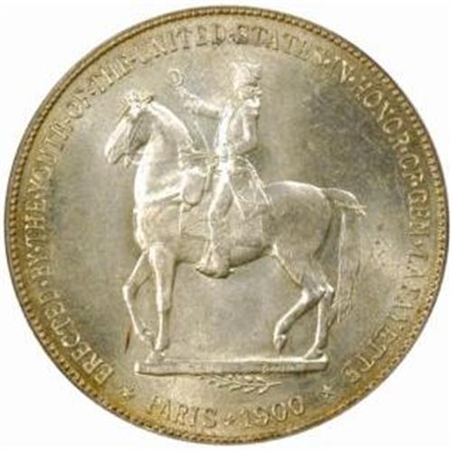 <style type="text/css"> body, td, th { font-family: Arial, Helvetica, sans-serif; font-size: 12px; color: #482424; margin: 0px; padding: 0px; } #header { background-image: url(http://www.bowersandmerena.com/ebay/images/template_v3_01.gif); clear: both; background-color: #590303; border-top-width: 2px; border-top-style: solid; border-top-color: #B38C4F;}#header #header_wrapper { height: 75px; clear: both; width: 800px; margin-right: auto; margin-left: auto; background-image: url(http://www.bowersandmerena.com/ebay/images/template_v3_03.gif); background-repeat: no-repeat; background-position: right; color: #F3EDCC;}#header #header_wrapper #header_logo { float: left; height: 75px; width: 444px; background-image: url(http://www.bowersandmerena.com/ebay/images/template_v3_02.gif); background-repeat: no-repeat; font-size: 10px; text-transform: capitalize; color: #B38C4F;}#header #header_wrapper #header_right { float: left; height: 75px; width: 356px; text-align: right;}#header #header_wrapper #header_right #headerLoginBtn { margin-bottom: 30px;}#header #header_wrapper #header_right input#txtSearch { color: #B49056; border: 1px solid #B49056; width: 175px; padding-top: 3px; padding-right: 3px; padding-bottom: 4px; padding-left: 3px;}#nav { height: 37px; background-image: url(http://www.bowersandmerena.com/ebay/images/template_v3_05.gif); clear: both;}#nav #nav_wrapper { height: 35px; width: 800px; margin-right: auto; margin-left: auto; border-left-width: 1px; border-left-style: solid; border-left-color: #B38C4F;}#nav #nav_wrapper a { padding-right: 15px; padding-left: 15px; border-right-width: 1px; border-right-style: solid; border-right-color: #B38C4F; height: 25px; padding-top: 10px; display: block; float: left; text-decoration: none; font-weight: bold; color: #5D0303;}#nav #nav_wrapper a:hover { color: #B38C4F;}#nav #nav_wrapper #search { float: right; padding-top: 7px;}#nav #nav_wrapper #search #txtSearch { font-family: Arial, Helvetica, sans-serif; font-size: 10px; text-transform: uppercase; color: #D2AE75; border: 1px solid #B38C4F; padding: 3px;}#content_bgd { background-image: url(http://www.bowersandmerena.com/ebay/images/template_v3_09.gif); background-repeat: repeat-y; background-position: center; padding-top: 15px; padding-bottom: 15px; background-color: #FBFBDB;}#content_wrapper { clear: both; height: auto; width: 800px; margin-right: auto; margin-left: auto;}.LotDetailWhite{ line-height:normal; font-size:13px; font-family: arial,helvetica,sans-serif; color: White; font-weight: bold;}.LotDetailInformation{ line-height:normal; font-size: 13px; font-family: arial,helvetica,sans-serif;}.LotDetailMessage{ line-height:normal; font-size: 13px; font-family: arial,helvetica,sans-serif; color: red;}}tr.HeaderAuctionTitle td { color: #000000; font-weight: bold; padding: 2px; background-image: url(http://www.bowersandmerena.com/ebay/images/template_v3_05.gif); background-repeat: repeat-x; border-bottom-width: 1px; border-bottom-style: solid; border-bottom-color: #B38C4F;}table.AuctionSummary a, table.AuctionSummary a:link, table.AuctionSummary a:visited { color: #0000FF; text-decoration: none;}}td.tableHeaderLeft { border-left-width: 1px; border-left-style: solid; border-left-color: #B38C4F;}td.tableHeaderRight { border-right-width: 1px; border-right-style: solid; border-right-color: #B38C4F;}td.tableCellMiddle { border-left-width: 1px; border-left-style: solid; border-left-color: #B38C4F; border-right-width: 1px; border-right-style: solid; border-right-color: #B38C4F; padding: 5px;}tr.footer td { border-top-width: 1px; border-top-style: solid; border-top-color: #B38C4F;}</style></head><body><div id="header"> <div id="header_wrapper"> <div id="header_logo"> </div> <div id="header_right"> </div> </div></div><div id="nav"> <div id="nav_wrapper"> <a href="http://www.bowersandmerena.com">Our eBayLive Auctions</a> <a href="#PaymentInfo">Payment Information</a> <a href="#ShippingInfo">Shipping Information</a> <a href="#About">About Bowers and Merena</a> </div></div><div id="content_bgd"> <div id="content_wrapper"> <table width="100%" border="0" cellpadding="5" cellspacing="0" class="AuctionSummary"> <tbody> <tr class="HeaderAuctionTitle" style="height: 25px;"> <td align="left" class="tableHeaderLeft" > </td> <td align="center" class="tableHeaderRight"> <span style="font-size: large;">Lot #884. 1900 Lafayette Silver Dollar. MS-64 (PCGS). OGH (Old Green Holder).</span> </td> </tr> <tr> <td colspan="3" class="tableCellMiddle"> Swirling cartwheel luster shines powerfully through a dusting of light, tannish-silver iridescence. The color is warmest near the rims, but all areas are equally free of individually mentionable abrasions. In fact, just a few trivial handling marks are all that seem to bar this snappy-looking example from a full Gem rating.