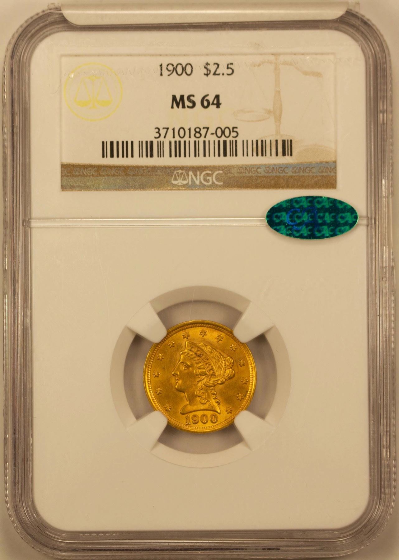 1900 Liberty Head Gold Quarter Eagle $2.5 NGC MS-64 CAC