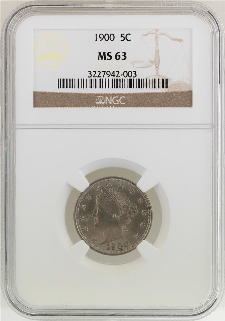 One 1900 Liberty Head Nickel Coin NGC MS63. NGC Certified.