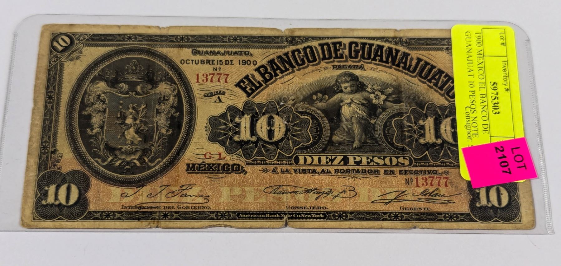 1900 MEXICO EL BANCO DE GUANAJUAT 10 PESOS NOTE