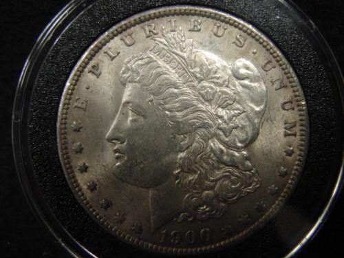 1900 U.S. MORGAN SILVER DOLLAR. Coin is in circular case.