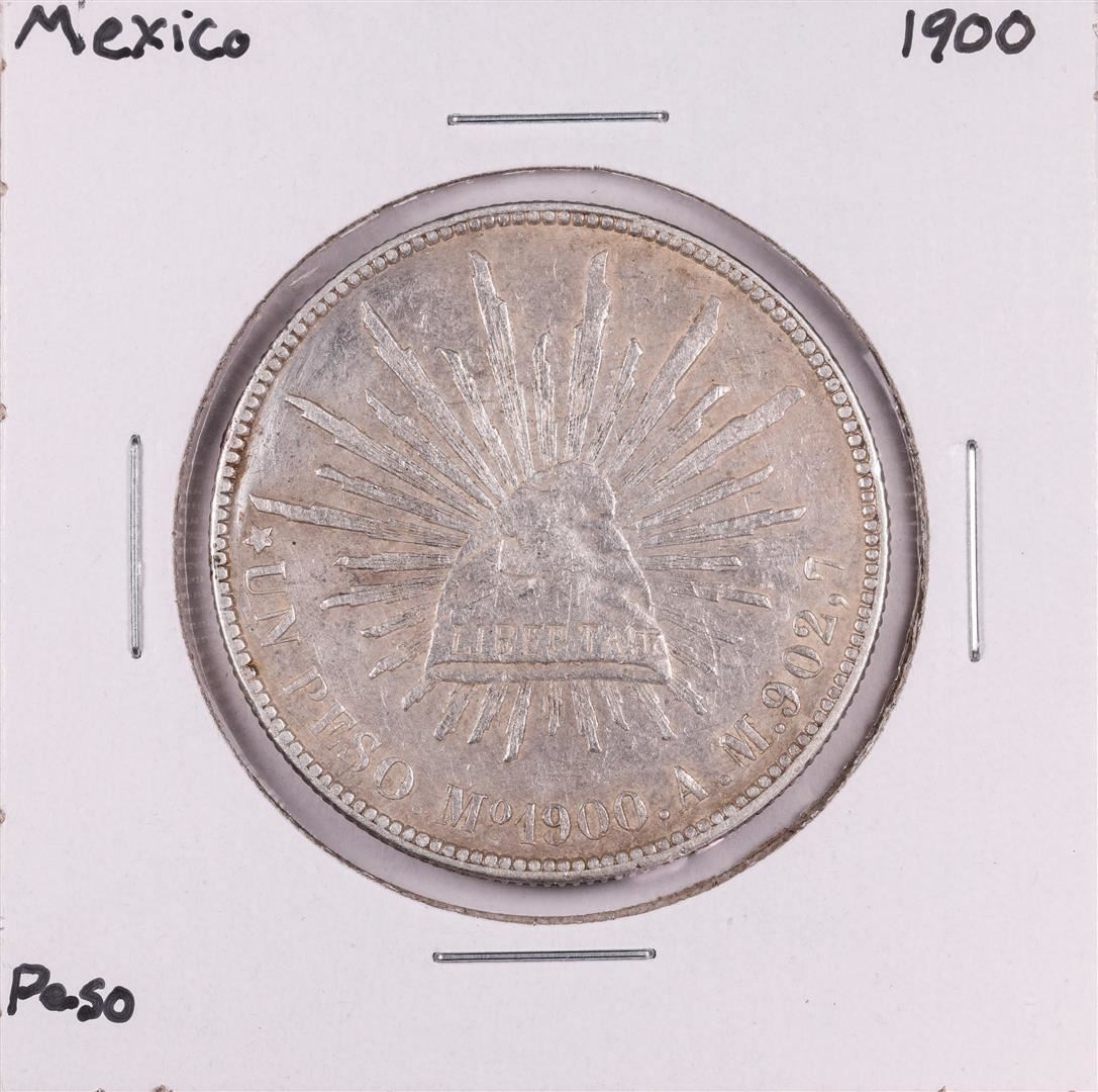 One 1900 Mexico Un Pesos Silver Coin.