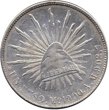 1900 Mo AM MEXICO SILVER UN PESO-UNC