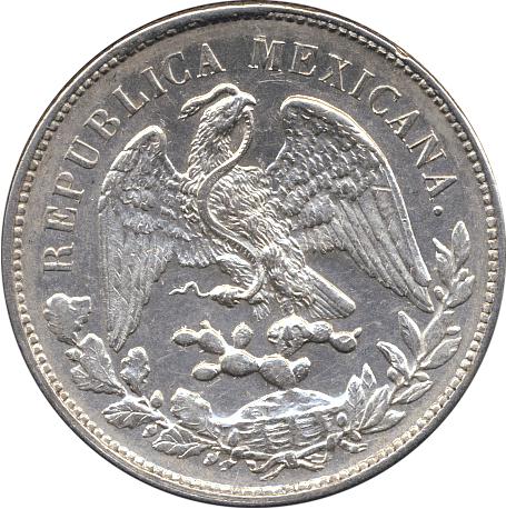 snake in beak Obv. Leg.: REPUBLICA MEXICANA Rev: Radiant