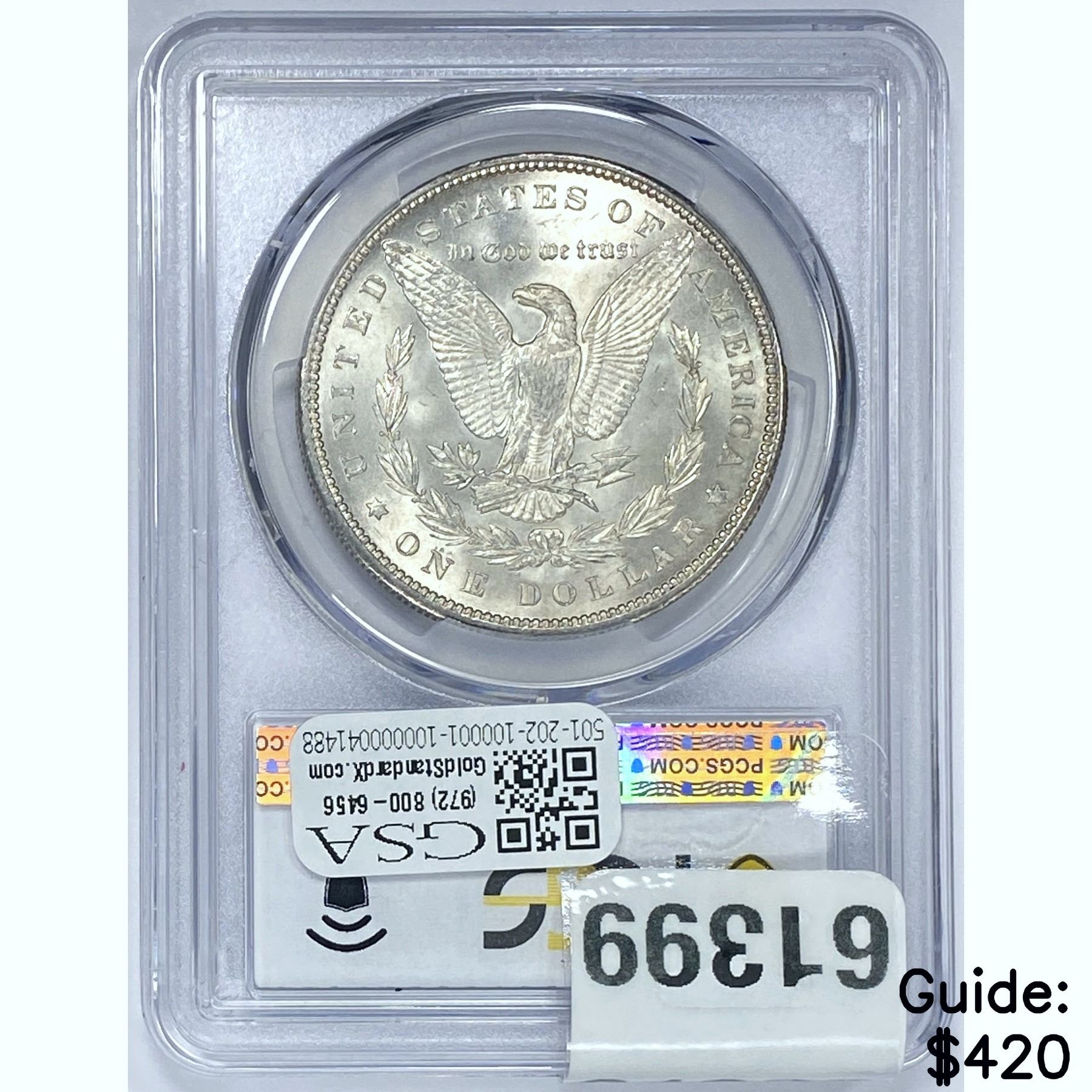 e. Coins sold referencing a third-party grading service are sold “AS IS” without any express or implied warranty, except for a guarantee by GSA that they are genuine. Removal or alteration of the holder, voids all of Bidder’s claims concerning that Product. Certain warranties may be available from the grading services and Bidders are referred to them for further details: Numismatic Guaranty Corporation (NGC), PO Box 4776, Sarasota, FL 34230, www.ngccoin.com/services/writtenguarantee.asp; Professional Coin Grading Services (PCGS), PO Box 9458, Newport Beach, CA 92658, www.pcgs.com/guarantee.html; ANACS, 6555 S. Kenton St., Ste. 303, Englewood, CO 80111; and Independent Coin Grading Co. (ICG), 7901 East Bellview, Ave., Suite 50, Englewood, CO 80111.