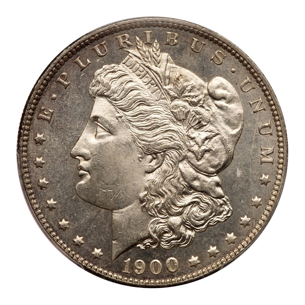 1900. PCGS graded MS-65 Prooflike. This is a very rare format for a 1900 Silver dollar as so few come with the desirable Prooflike designation. These were some of the first coins struck with brand new, and carefully polished dies, as more coins were struck the prooflike reflectivity quickly faded away on later coins. Hence demand for these elusive well morrired and reflective examples is high on certain dates like this due to their relative rarity. Furthermore, this is a gem level of preservation, an extraordinary event for these delicate reflective coins. Even minor bag handling sends these into far lower grades than what is seen here. A glorious example that is bright, well struck and untoned. Pop 22; 9 finer for MSPL, 3 in 65+, 6 in 66. PCGS # 7265 Estimated Value 2,000 - UP