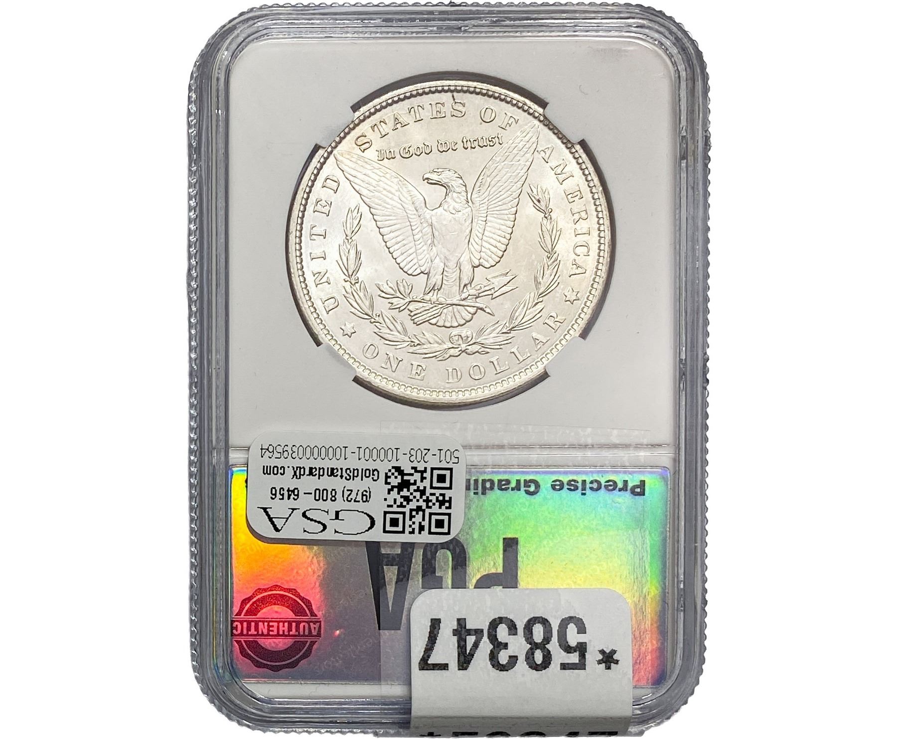 l. All non-certified coins and currency are guaranteed genuine, but are not guaranteed as to grade, since grading is a matter of opinion, an art and not a science, and therefore the description rendered by GSA or any third-party grading service may not agree with the opinion of others (including trained experts), and the same expert may not grade the same item with the same grade at two different times. GSA may, but is not obligated to, express an opinion as to non-certified numismatic items, in GSA’s opinion, or by its employees’ experience and the current interpretation of the American Numismatic Association’s standards as of the date the catalog was prepared. There is no guarantee or warranty expressed or implied that the grading opinions utilized by GSA, if any, will meet the standards of any grading service at any time in the future.