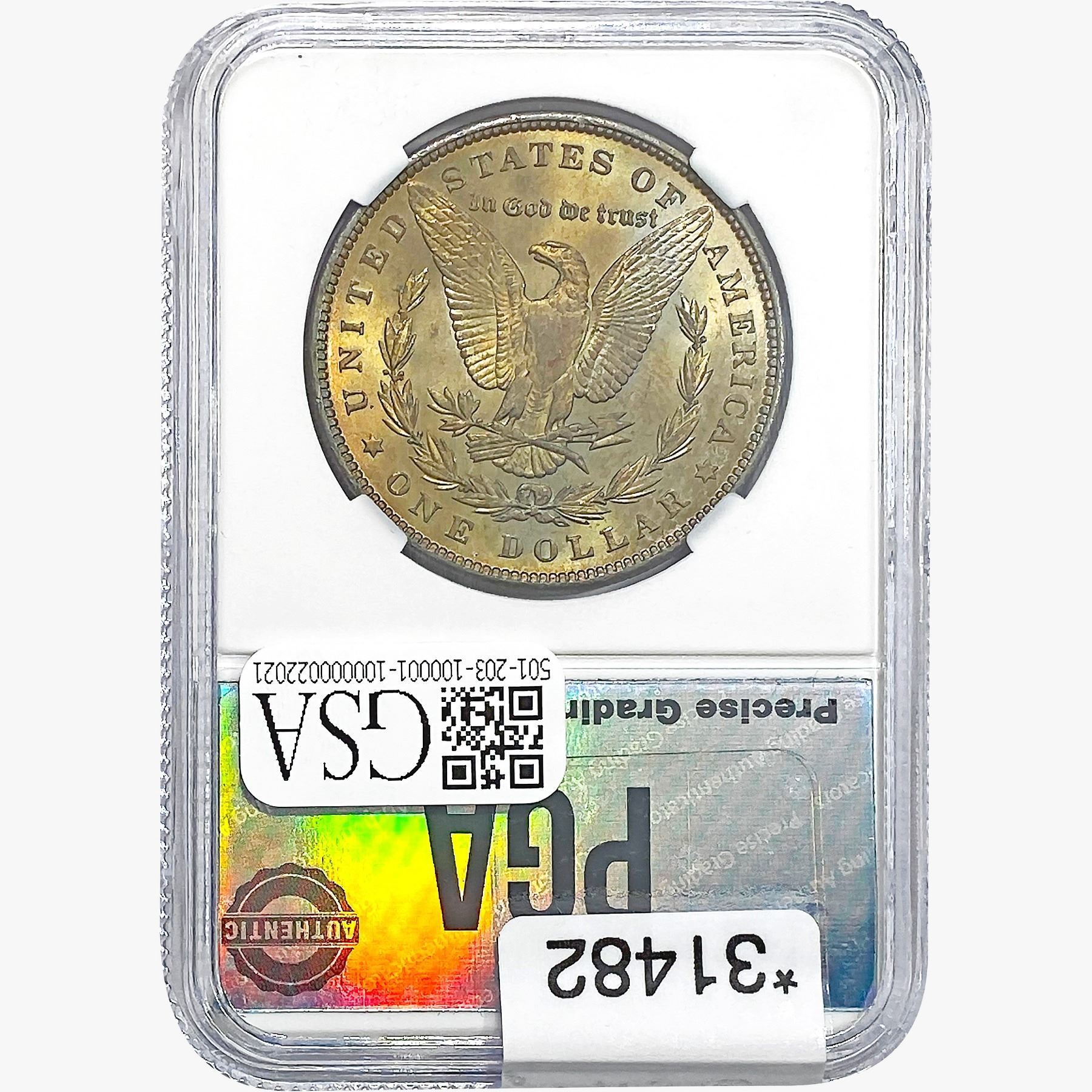 COINS AND CURRENCY LISTED IN GSA’S CATALOG AS GRADED AND ENCAPSULATED BY PCGS, NGC, ANACS, ICG, PCGS CURRENCY, PMG, PCGS BANKNOTE GRADING, CMC OR ANY OTHER THIRD-PARTY GRADING SERVICE ARE LIKEWISE SOLD “AS-IS” EXCEPT AS EXPRESSLY SET FORTH HEREIN. ALL THIRD-PARTY GRADING SERVICE GUARANTEES, INCLUDING AUTHENTICITY, ARE THE SOLE RESPONSIBILITY OF THE THIRD-PARTY GRADING SERVICE AND NOT WARRANTIES OR GUARANTEES OF GSA. BIDDERS SHOULD CONTACT THESE THIRD-PARTY GRADING SERVICES DIRECTLY WITH RESPECT TO ANY CLAIMS OR QUESTIONS THEY MAY HAVE CONCERNING THEIR GUARANTEES AND WARRANTIES. BIDDERS ACKNOWLEDGE AND AGREE THAT AUCTIONEER IS NOT BOUND BY OR LIABLE FOR ANY OPINION OR CERTIFICATION BY ANY THIRD-PARTY GRADING SERVICE. REMOVAL OF A PRODUCT FROM ITS PROTECTIVE CASING OR HOLDER OR ALTERATION OF ANY COIN HOLDER WAIVES ALL RIGHTS CONCERNING THE PRODUCT CONTAINED THEREIN.