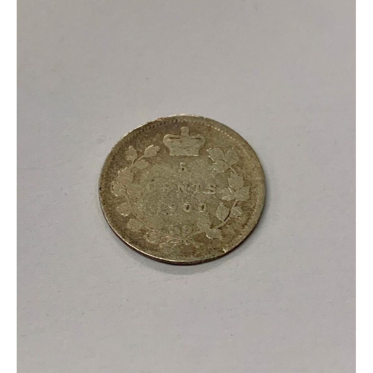 Obverse The portrait in left profile of Victoria is surrounded with the inscriptions "CANADA" and "VICTORIA DEI GRATIA REGINA" (Victoria, Queen by the grace of God) Lettering: VICTORIA DEI GRATIA REGINA. CANADA Reverse The facial value is surrounded with two maple boughs and the crown of Queen Victoria Lettering: 5 CENTS 1858 Features TypeStandard circulation coin Years1858-1901 Value5 Cents (0.05 CAD) MetalSilver (.925) Weight1.167 g Diameter15.494 mm Thickness0.70 mm ShapeRound OrientationCoin alignment ↑↓