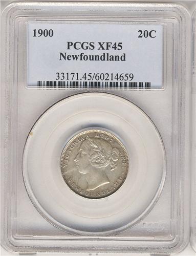 1900 Nfld 20¢. A superb example with strong strike and lustre. PCGS XF45